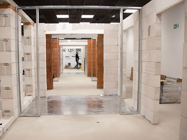 Dzięki zastosowaniu różnorodnych materiałów bazowych do budowy otworów (bloczek komórkowy, ścianki KG, żelbeton, cegła, konstrukcja drewniana) monterzy uczą się wszystkich możliwych technik montażu.