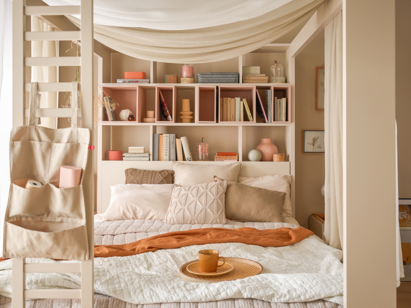 W łóżku 4 You Fresh zmieści się niemal cały domowy świat. Ulubione książki będziesz mieć zawsze pod ręką dzięki zintegrowanemu regałowi. Baldachim wprowadzi kojącą atmosferę.