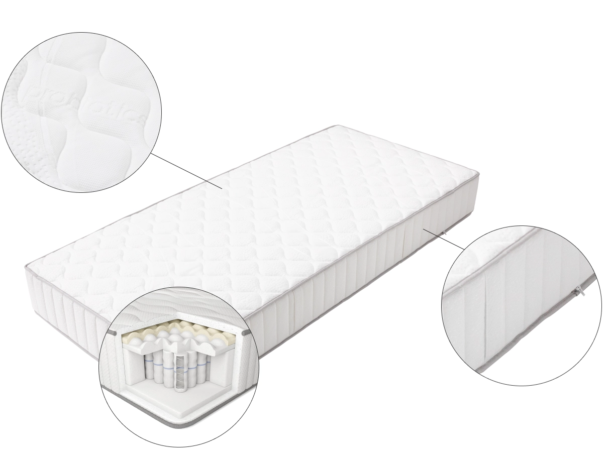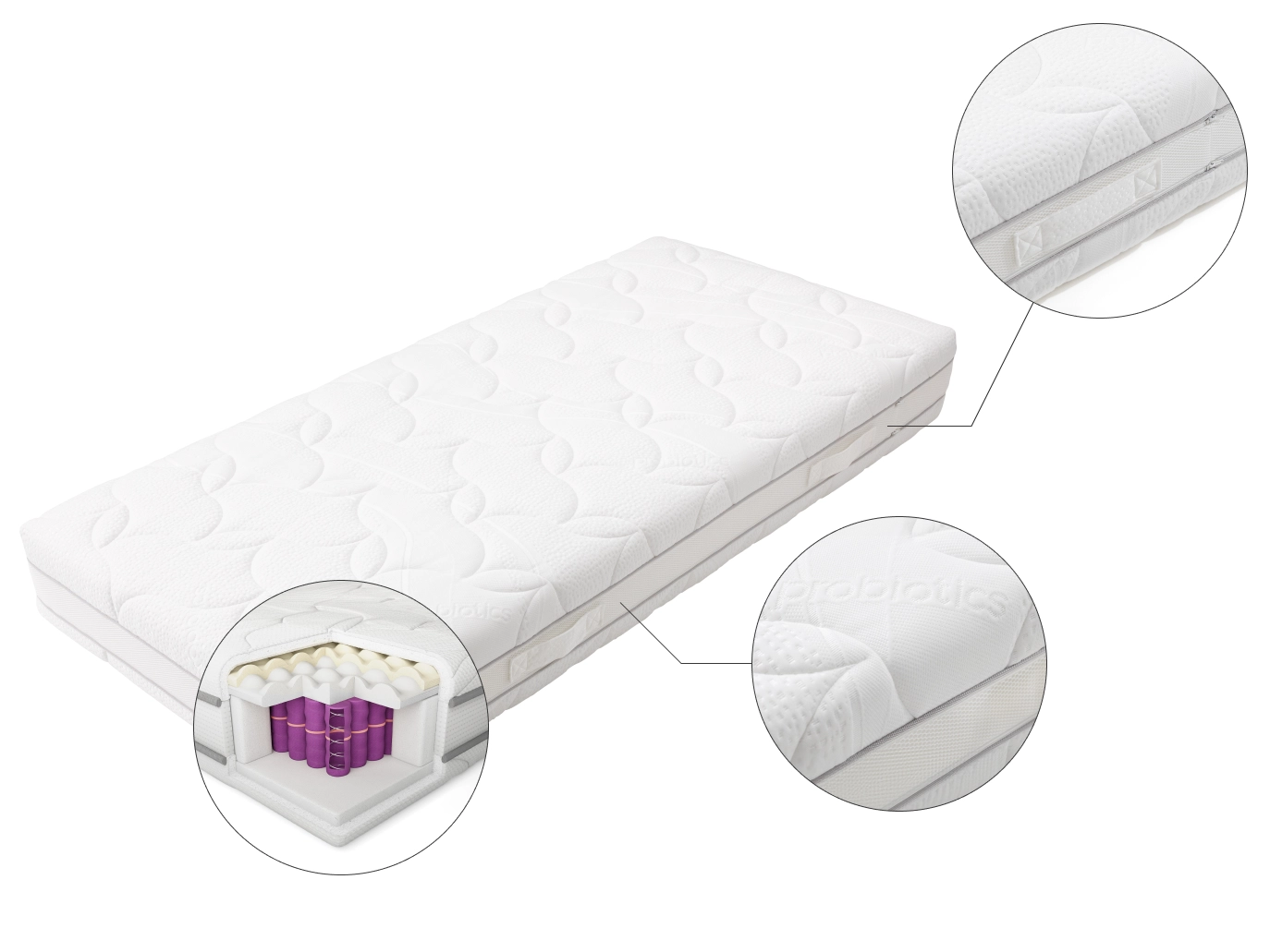 Materac Luni • pokrowiec ma właściwości antybakteryjne • sprężyny pocket zapewniają dobre podparcie • uchwyty ułatwiają podnoszenie materaca, a pokrowiec można ściągnąć do prania