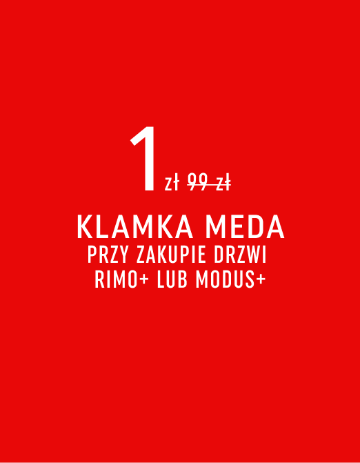 Kup drzwi Rimo+ lub Modus+ i skorzystaj z wyjątkowej oferty – klamka Meda za 1 zł (zamiast 99 zł).