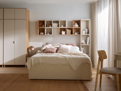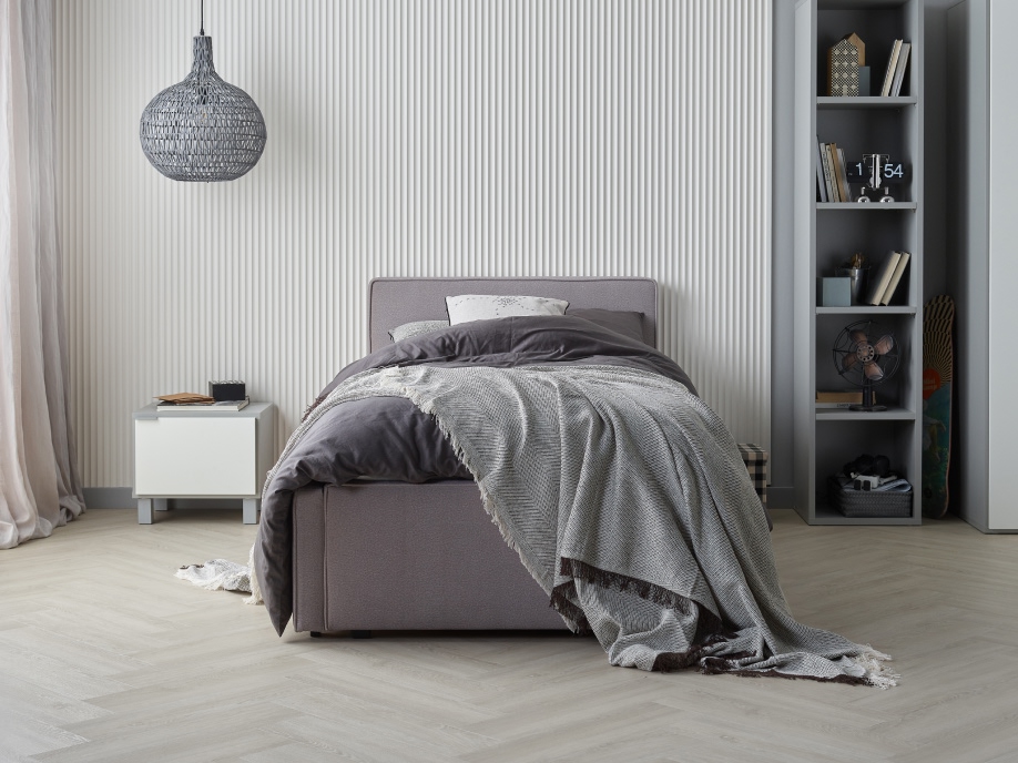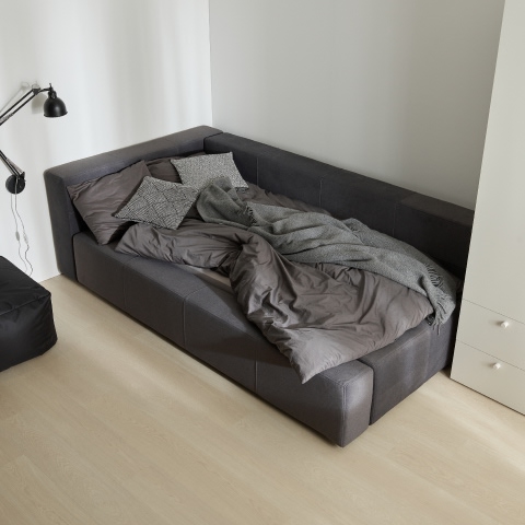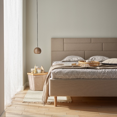Łóżko to centrum nastoletniego pokoju — tapicerowane modele Reli i Nook w ciągu dnia sprawdzą się jako wygodna kanapa do nauki i relaksu, a wieczorem zapewnią spokojny, komfortowy sen.