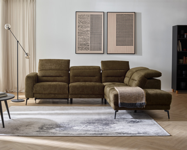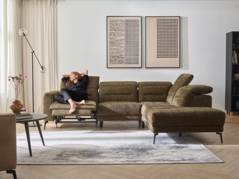 Sofa narożna Motio to kwintesencja komfortu. Każdy domownik dopasuje ułożenie siedziska do swoich preferencji. Z pomocą elektrycznego sterowania można ustawić siedzisko w pozycji “zero gravity”, gdzie nogi unoszą się na wysokość serca, a napięcie znika – krążenie się poprawia, a Ty wchodzisz w stan najwyższego odprężenia.