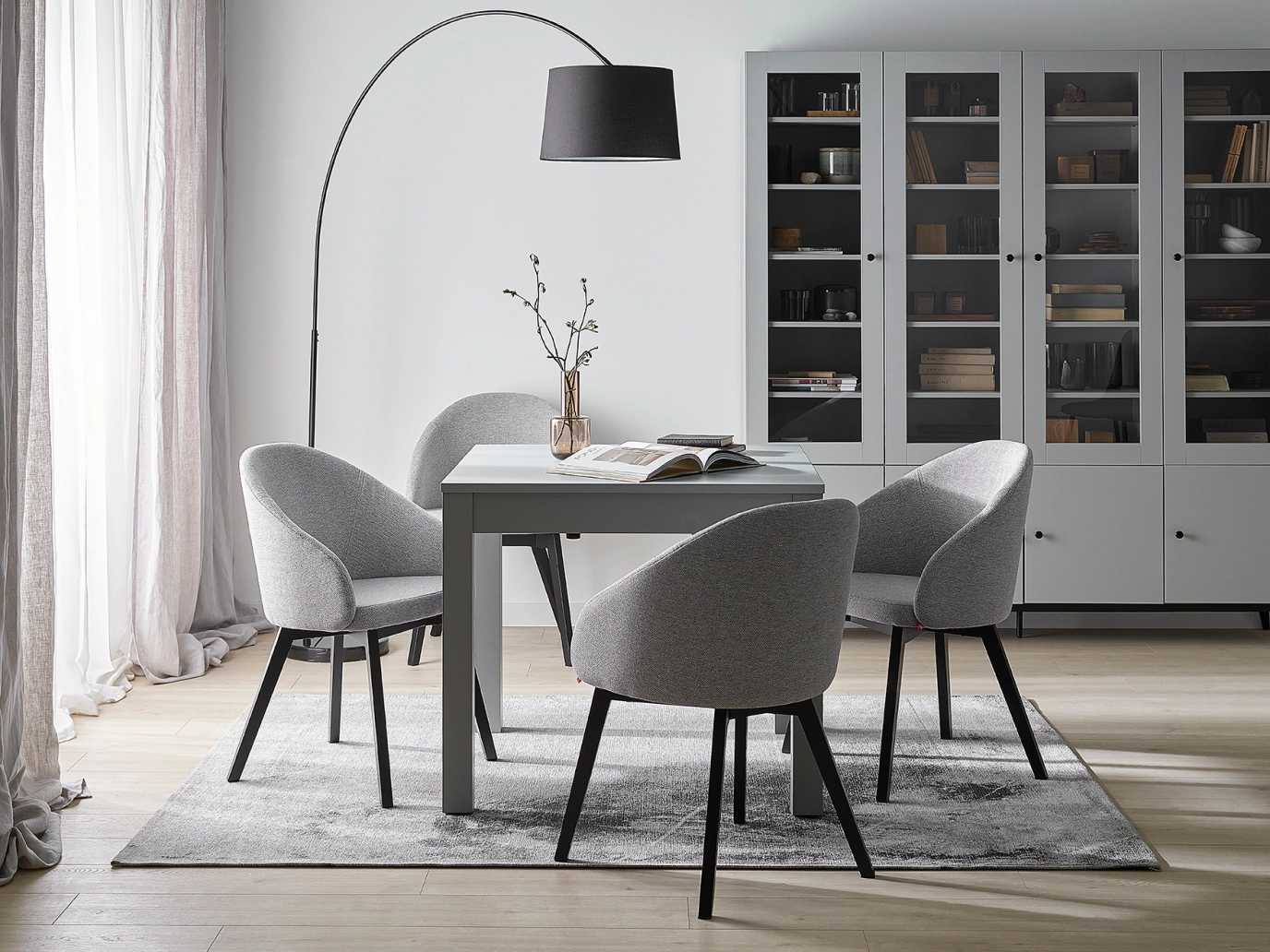Przyjemne, pełne otulenie, stabilność i piękna forma – krzesła Onest to kwintesencja komfortu. Szeroko rozstawione nogi nadają im efektowny wygląd. Jeśli zależy nam na wygodzie, ale chcemy pomieścić przy stole jak najwięcej gości, warto wybrać krzesła tapicerowane z wąsko rozstawionym stelażem – jak w przypadku modelu Komm.