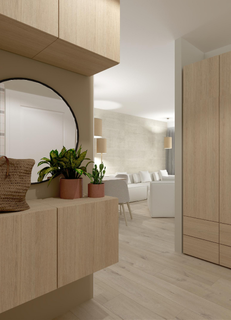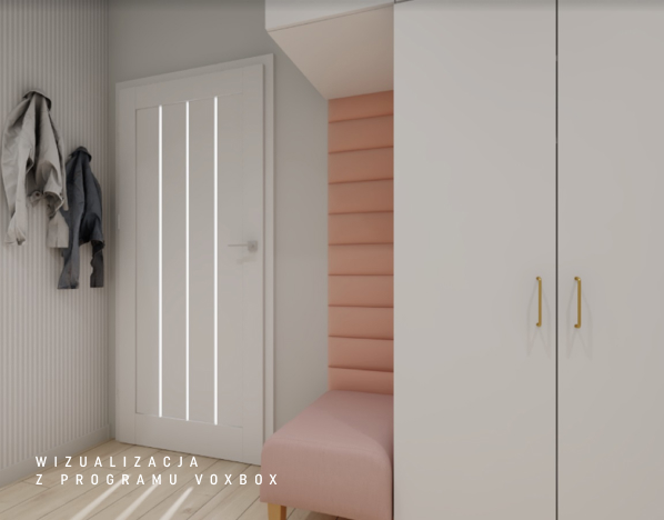 Szafy Creative w kolorze nude pozwolą stworzyć niezwykle kobiecy i przytulny przedpokój. W połączeniu z panelami tapicerowanymi Soform i lamelami Linerio przestrzeń ta nabierze jeszcze więcej ciepła.