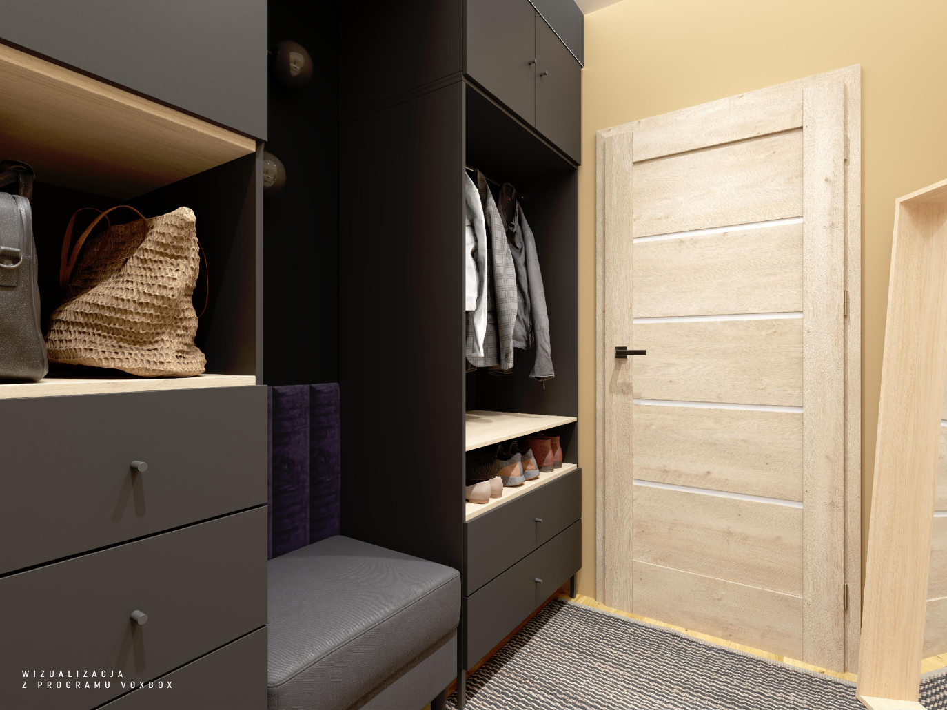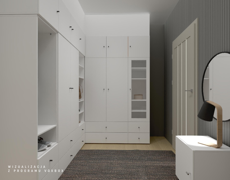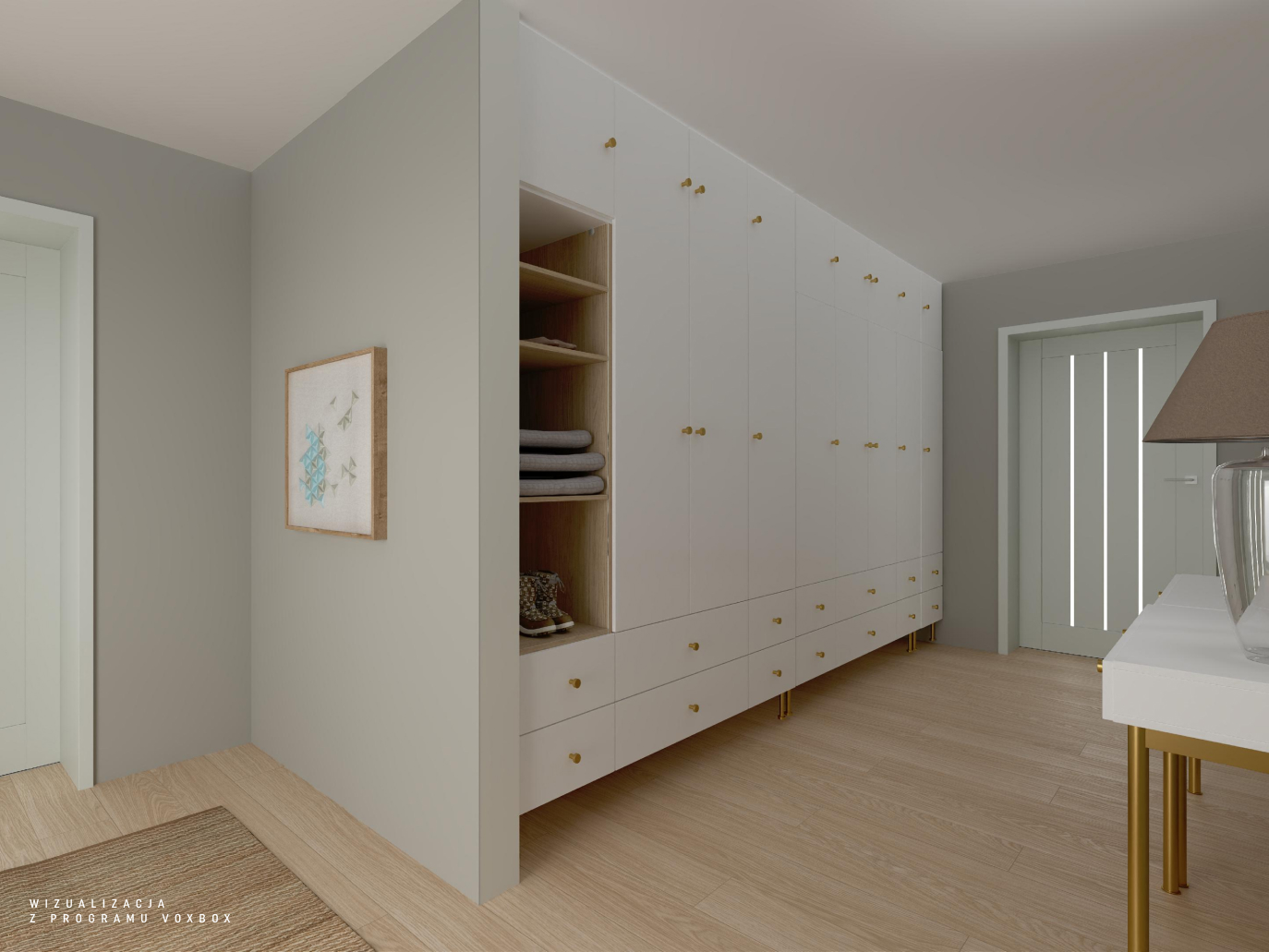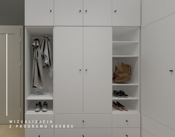 KORYTARZ Z WYSOKĄ ZABUDOWĄ I PRAKTYCZNYMI ORGANIZERAMI