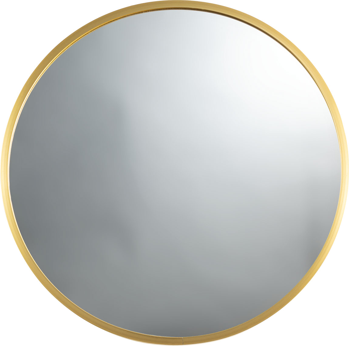 Lustro Leen posiada okrągłą metalową ramę w kolorze złotym.