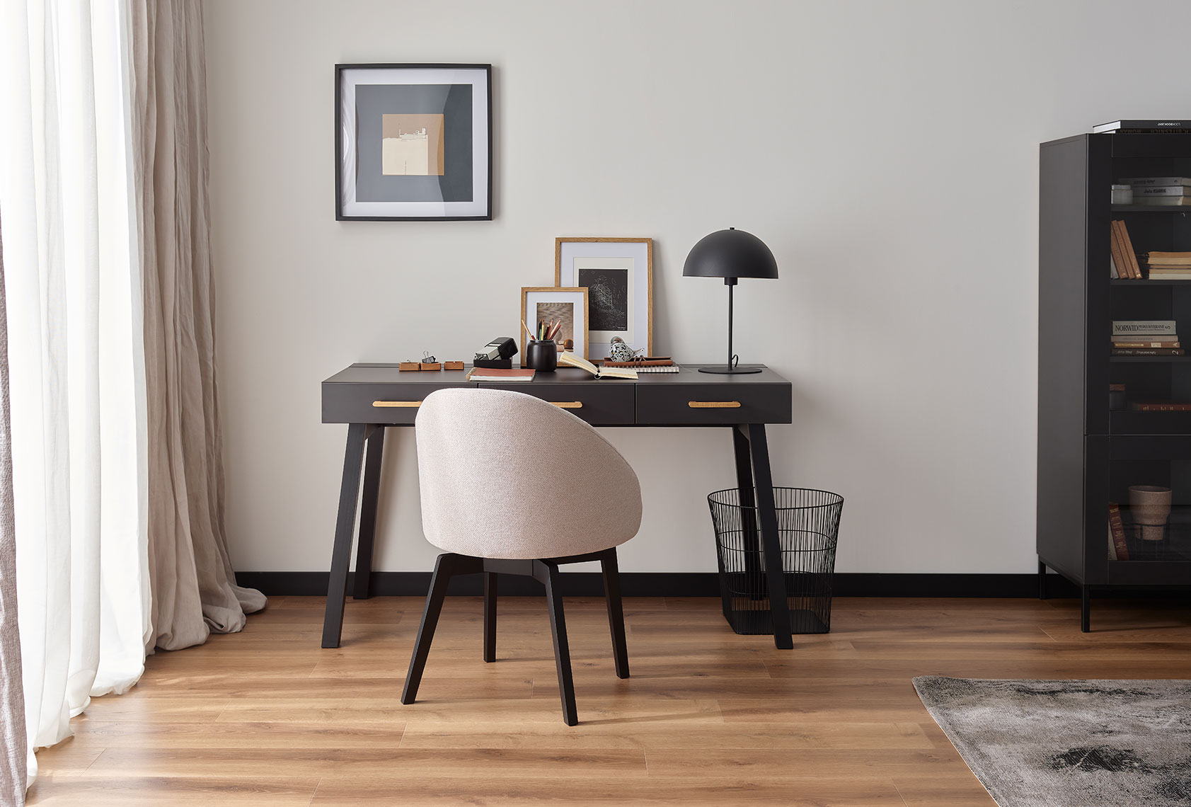 - Zdecyduj, czy biurko będzie posiadać jedną, dwie czy trzy szuflady. Możesz też dopasować uchwyty lub postawić na gładkie szuflady z systemem Push to open.