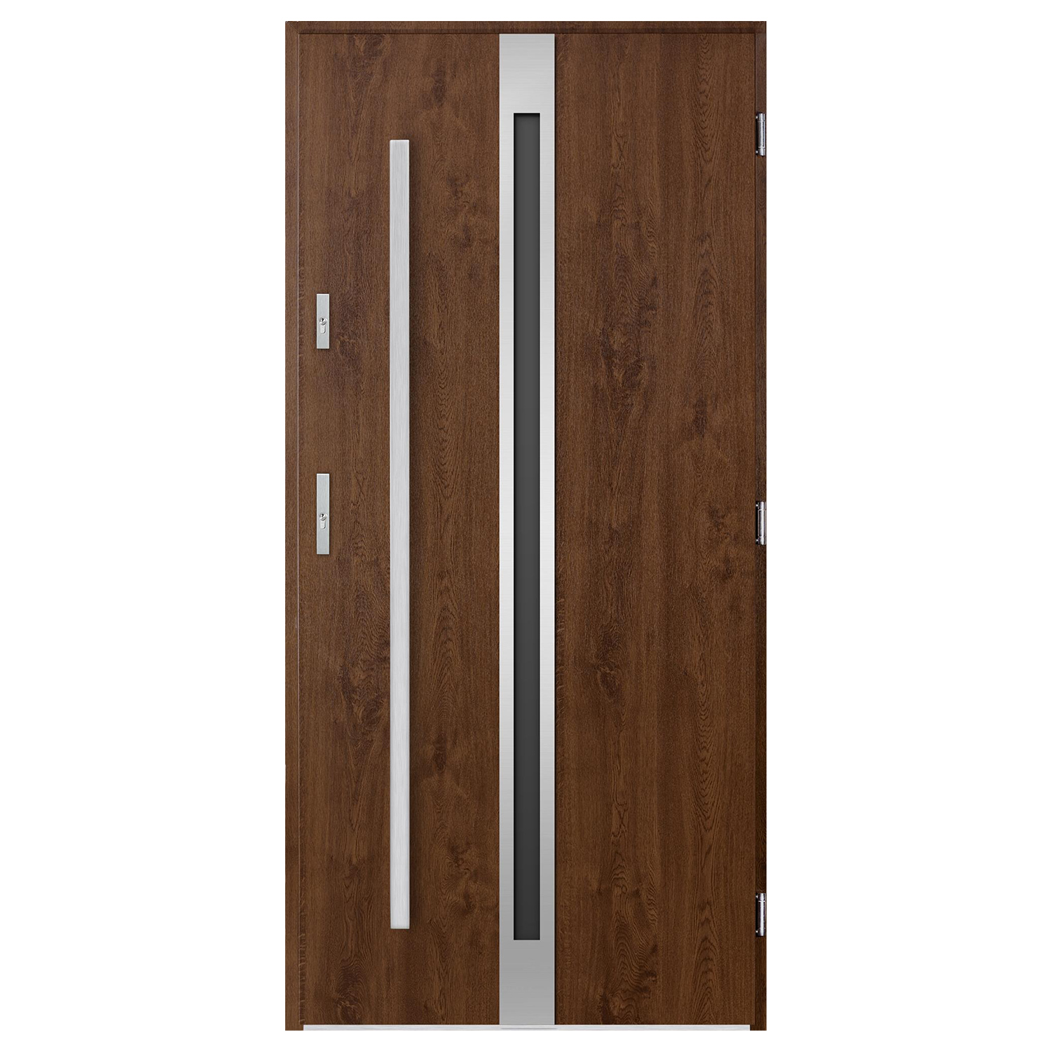 Poszycie skrzydła Lemos wykonane jest z blachy stalowej zabezpieczonej antykorozyjnie pokrytej wysokiej jakości folią odporną na promieniowanie UV oraz czynniki atmosferyczne. Drzwi wyposażone są w trzy zawiasy 3D o średnicy 20 mm znacznie ułatwiające regulację i ich funkcjonalność. Wypełnienie stanowi wstrzykiwana piana poliuretanowa PUR zapewniająca znacznie wyższe parametry izolacyjności termicznej niż polistyren spieniony. Skrzydło wyposażone jest w dwa zamki z trzema bolcami oraz trzy bolce antywyważeniowe. Konstrukcja skrzydła oparta jest o ramiak wykonany z wysokogatunkowej, wodoodpornej sklejki liściastej – zapewnia to znakomitą stabilność mechaniczną skrzydła w zmiennych warunkach atmosferycznych. Do wyboru mamy pakiet 4-szybowy z ciepłymi ramkami Chromatec Ultra: szyba reflex grafit oraz lustro weneckie. Ościeżnica termiczna Polstar-Thermo to dwudzielna konstrukcja przedzielona wkładką z tworzywa sztucznego - zastrzeżony wzór użytkowy. Systemowy próg Alu Thermo Roto o wysokości 19,6 mm.