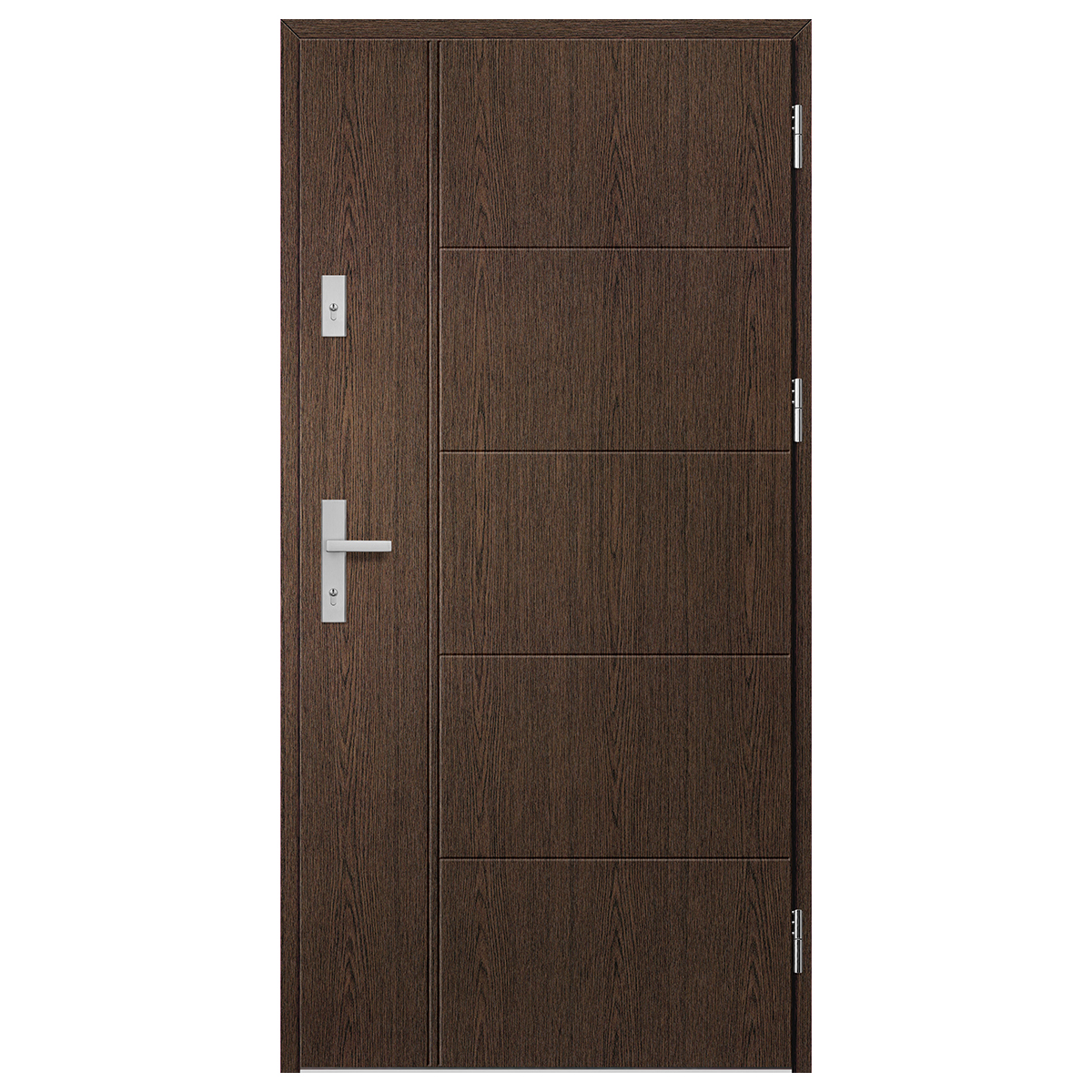 – maskownice. - Ościeżnica stalowa, ocynkowana i oklejona w kolorze skrzydła drzwiowego, wyposażona w ciepły próg aluminiowy