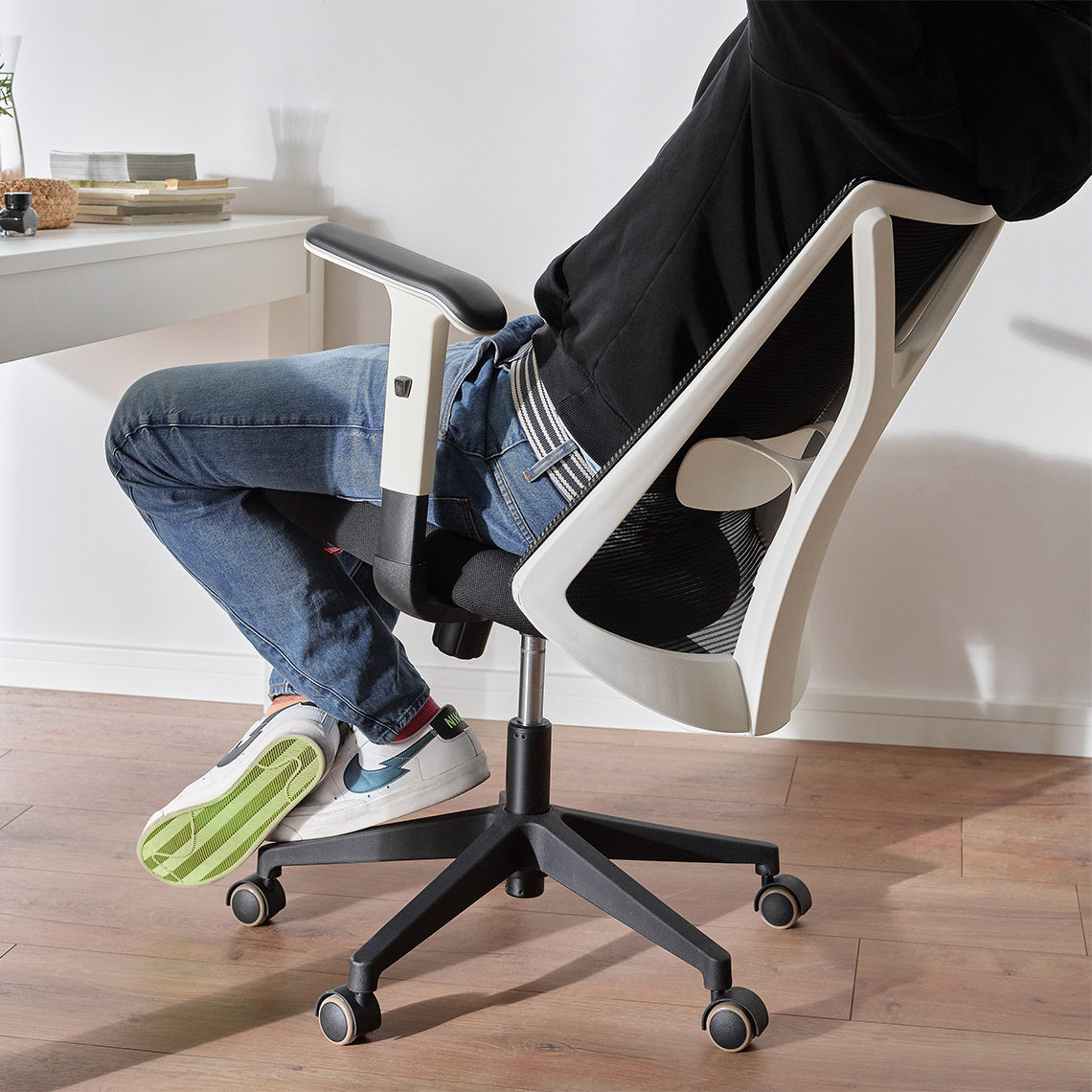 - Oparcie z siatki zapewnia swobodny przepływ powietrza, co przekłada się na komfort długotrwałego korzystania z fotela. Na meblu można się odchylić i zrelaksować w wygodniejszej pozycji.