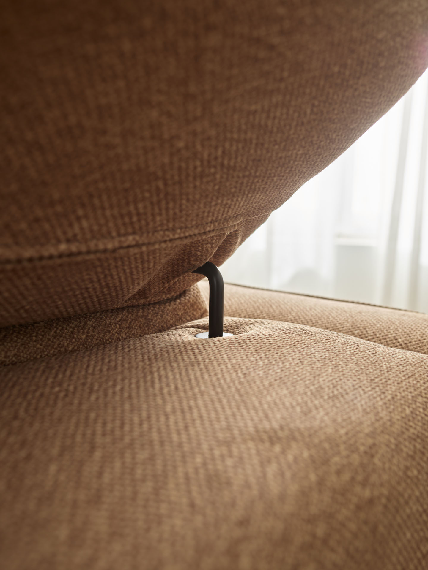 - Elektrycznie wysuwany podnóżek pozwala wypoczywać w pozycji „zero gravity”. Do sterowania funkcją relaks służą przyciski wewnątrz podłokietnika.