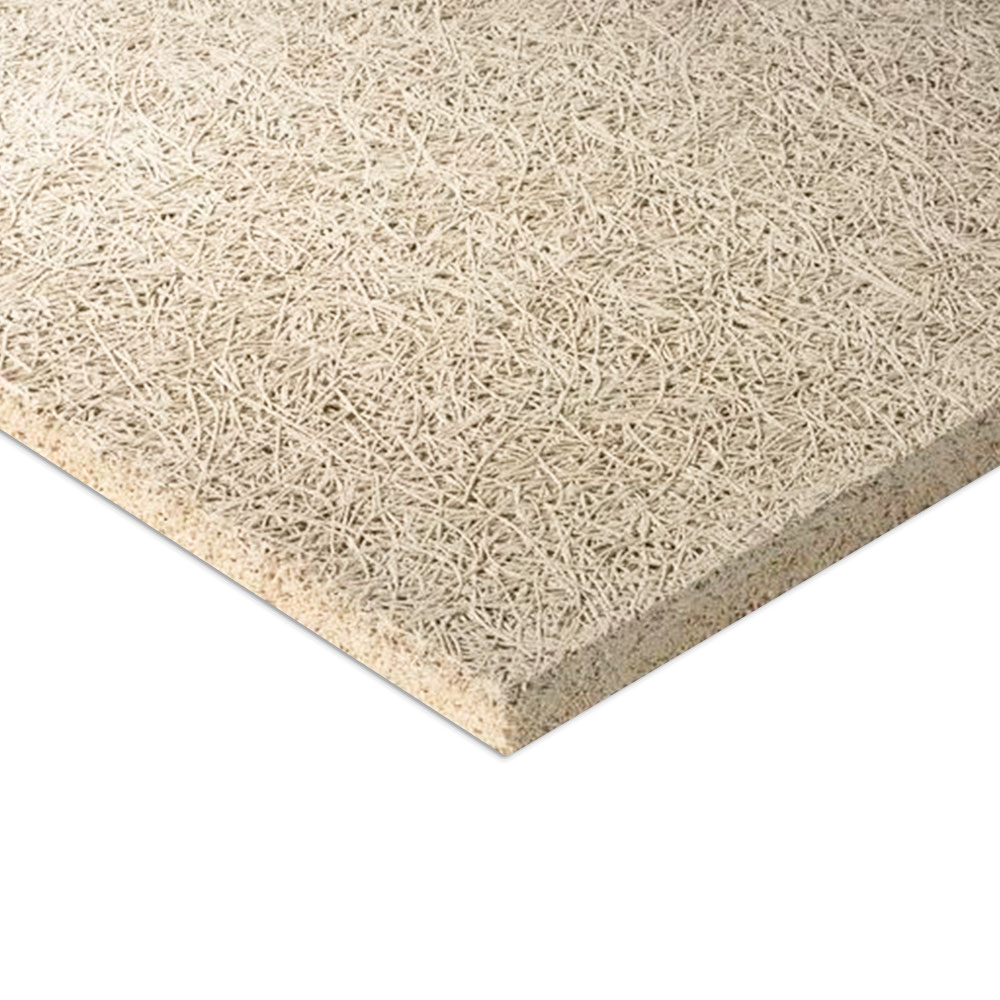 Heradesign superfine to jednowarstwowa, wiązana magnezytem płyta akustyczna z wełny drzewnej (szerokość włókien ok. 1 mm).