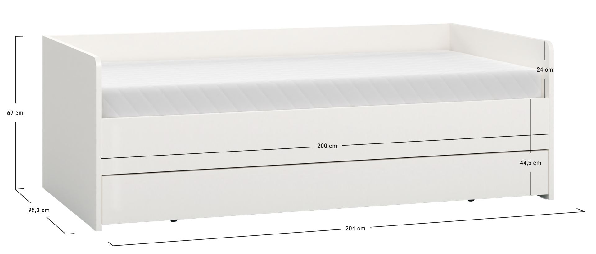 - Kanapa w ciągu dnia może służyć jako mebel do wypoczynku i relaksu, a w nocy zmienić się w wygodne łóżko jednoosobowe o powierzchni spania 90x200, odpowiedniej zarówno dla dziecka, jak i osoby dorosłej.
