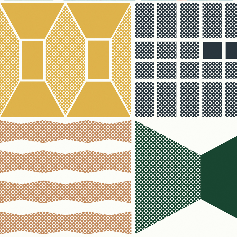 - Panele Kerradeco Tiled Patterns Multiform zdobi dekor w odcieniach bieli, szarości, czerni, nude i szafranu. Wspomniane kolory stanowią harmonijną całość i szczególnie dobrze komponują się z meblami Creative.