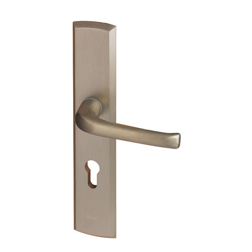 Klamka Manitoba Plus do drzwi zewnętrznych firmy AXA z uniwersalnym wspomaganiem ruchu klamki.