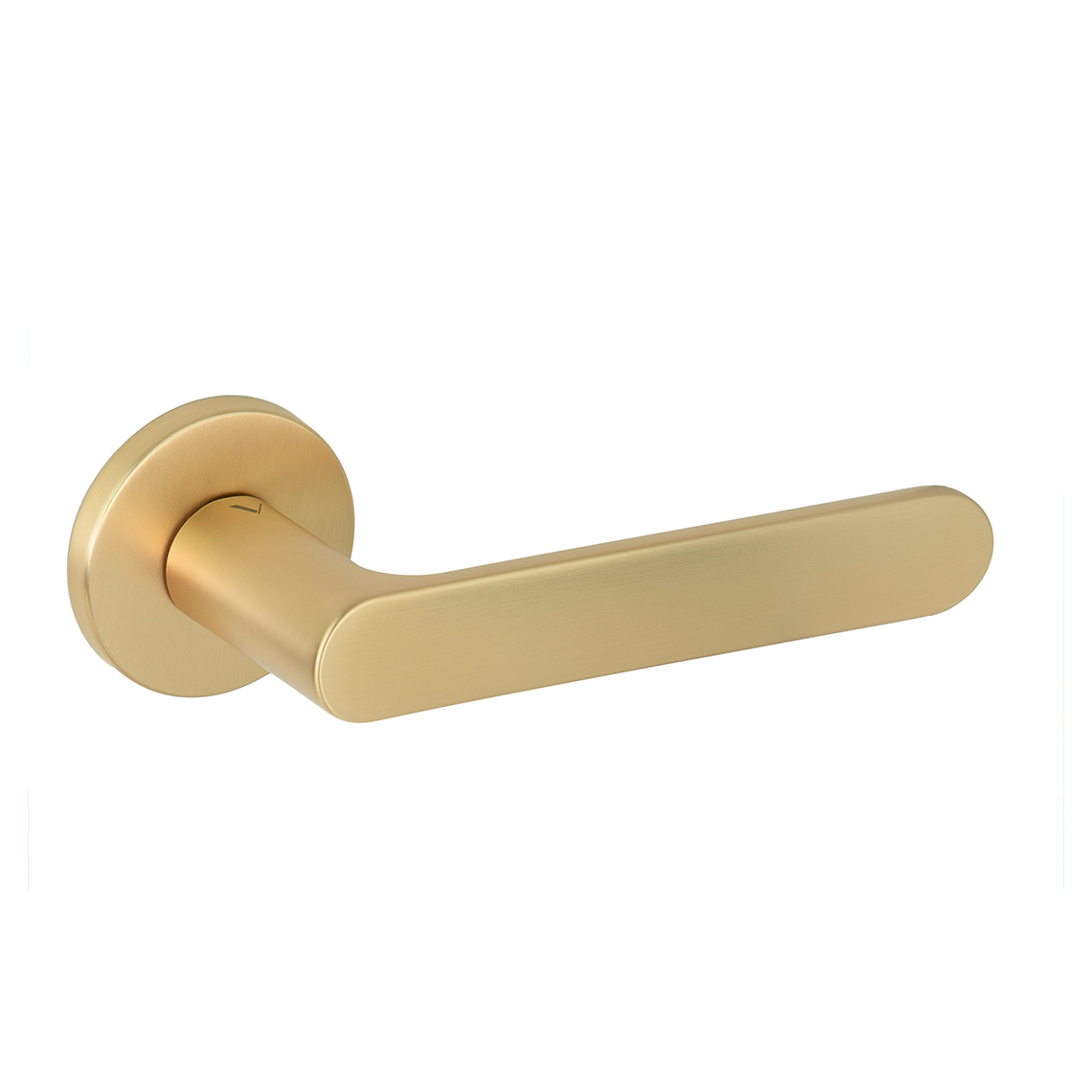 Klamka VDS Creo Fit w kolorze złoty-satyna to eleganckie rozwiązanie do drzwi. Wyposażona jest w okrągły szyld o wymiarach 52 x 144 mm, co nadaje jej klasyczny, a zarazem nowoczesny wygląd. Grubość rozety wynosząca 6 mm zapewnia subtelne i płaskie wykończenie. Wykończenie w odcieniu złoty-satyna sprawia, że klamka może stanowić uniwersalny i efektowny akcent w różnych aranżacjach wnętrz, dodając im ciepła i luksusowego charakteru.