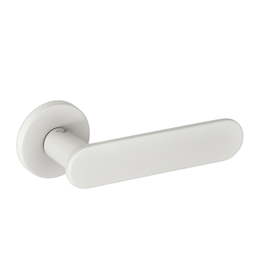 Klamka VDS Maff Fit w kolorze Ivory to eleganckie rozwiązanie do drzwi. Wyposażona jest w okrągły szyld o wymiarach 52 x 143 mm, co nadaje jej klasyczny, a zarazem nowoczesny wygląd. Grubość rozety wynosząca 6 mm zapewnia subtelne i płaskie wykończenie. Wykończenie w odcieniu Ivory sprawia, że klamka może stanowić uniwersalny i efektowny akcent w różnych aranżacjach wnętrz, dodając im delikatności i wyrafinowania.