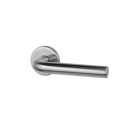 Klamka do drzwi wewnętrznych firmy VDS na szyldzie okrągłym, dzielonym.