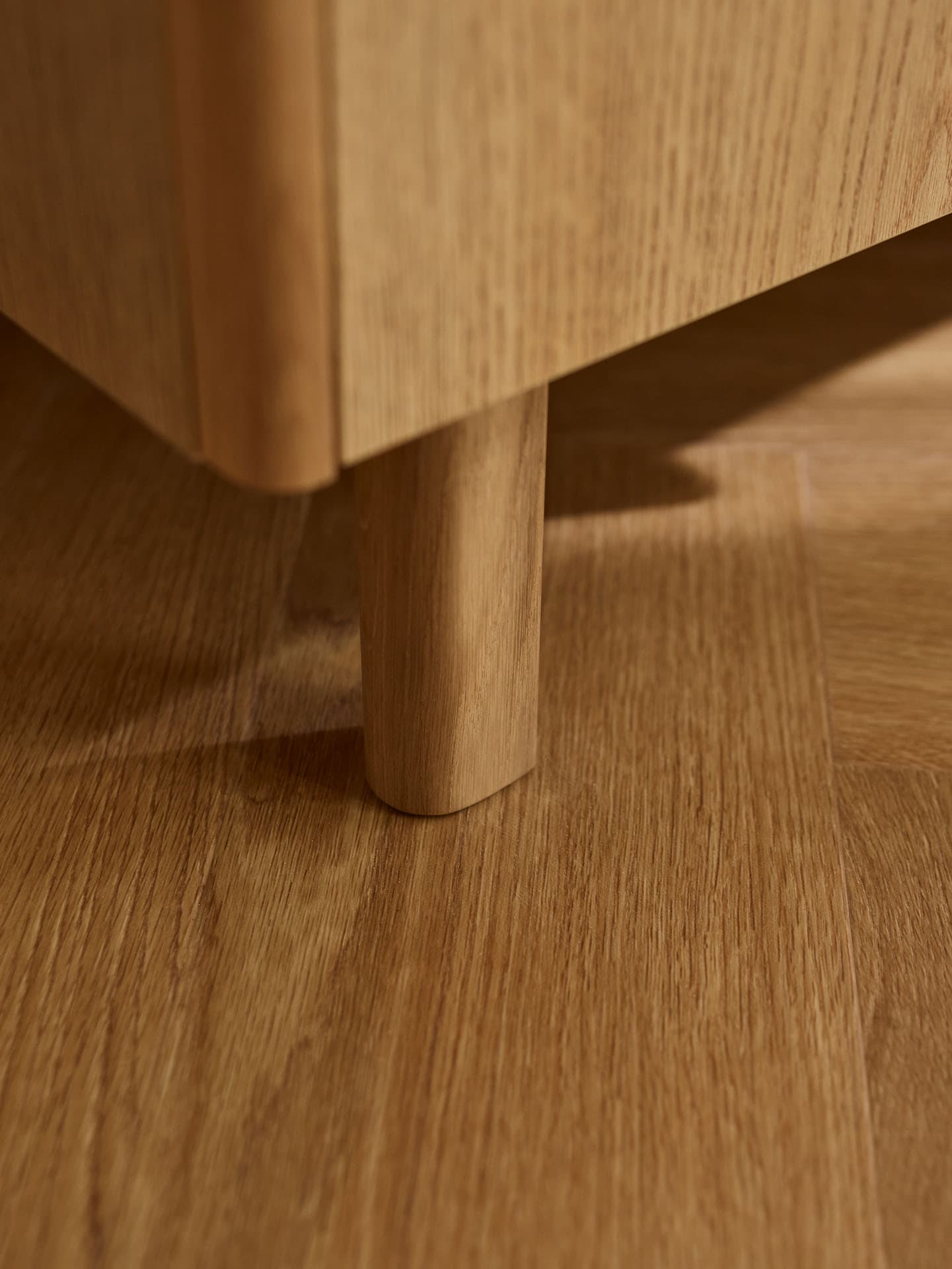 - Całość wsparta jest na dębowych nogach o wysokości 13 cm, które nadają bryle lekkości i umożliwiają swobodne sprzątanie pod meblem.