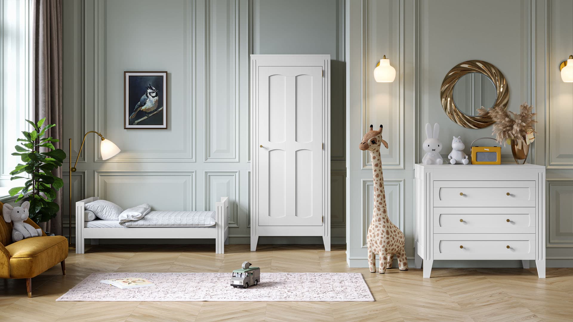 Trzy głębokie i pojemne szuflady z system cichego domyku pozwolą bardzo efektywnie zorganizować rzeczy Twojego dziecka tj. ubranka, pościel lub zabawki. - Wysokie nogi znacznie ułatwią sprzątanie.