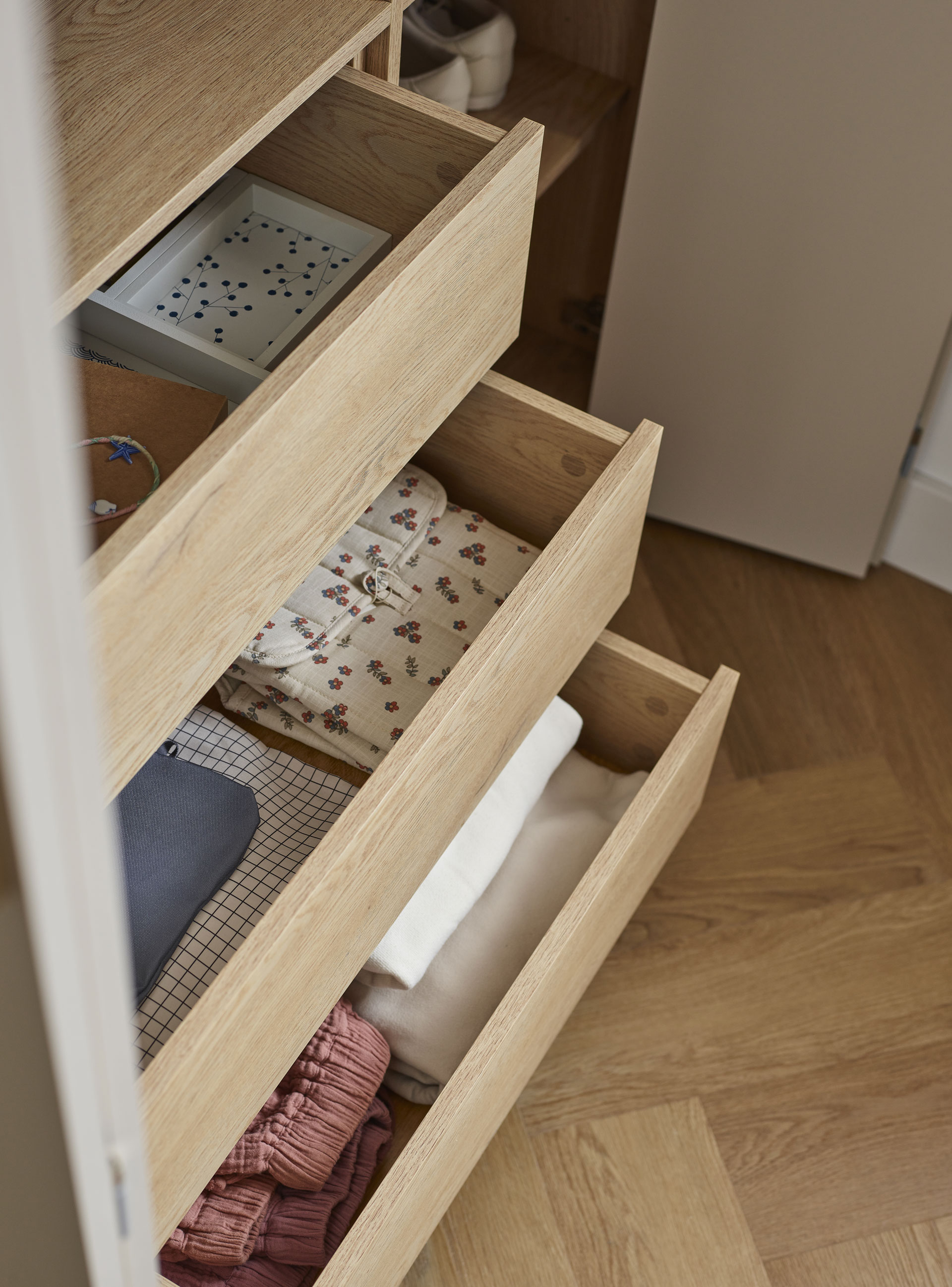 - Szuflady z mechanizmem cichego domyku stanowią idealne miejsce na bieliznę, pościel i wszelkie dodatki, które chce się mieć zawsze pod ręką.