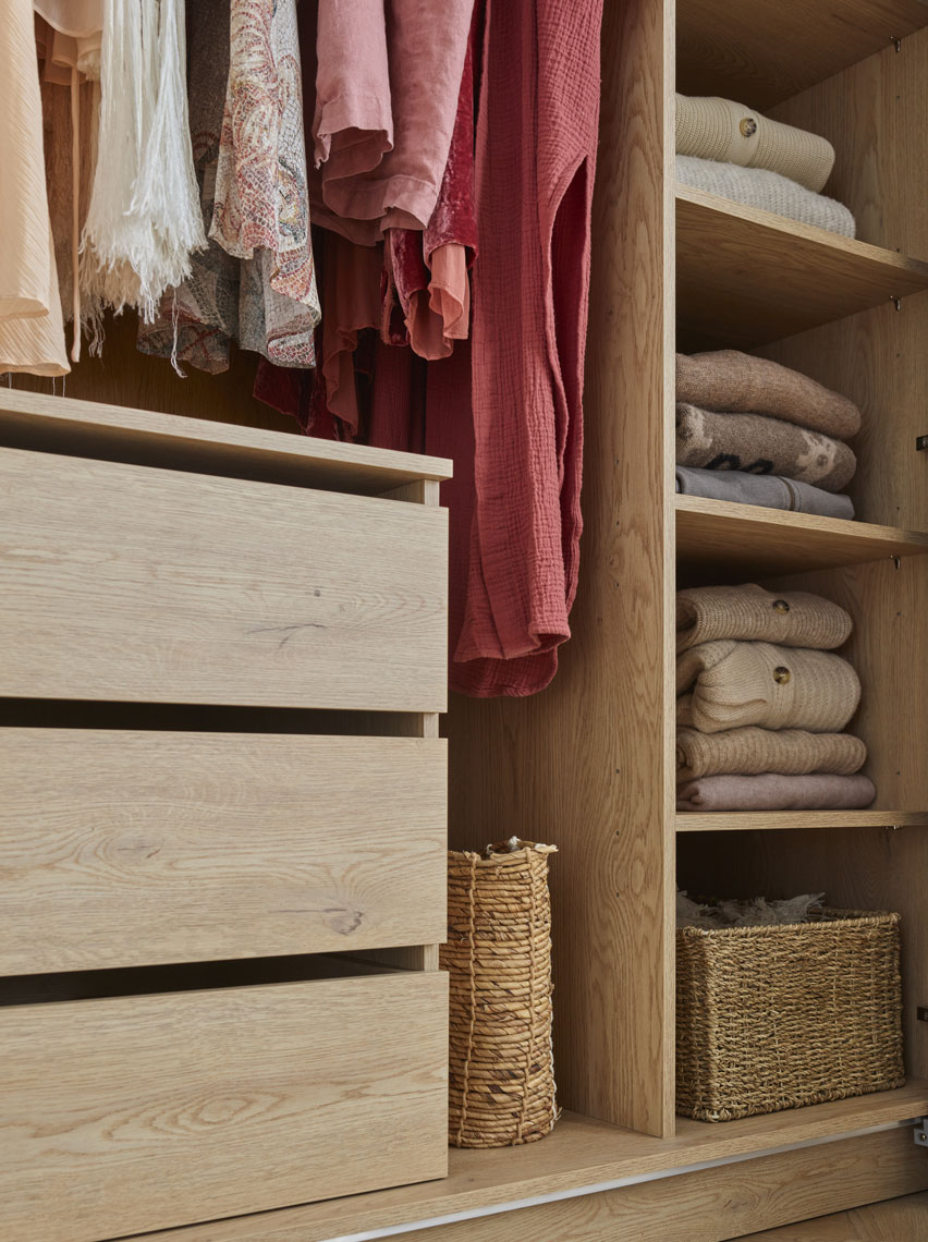 - Ma kolor wnętrza szafy, dzięki czemu stanowi harmonijny element całości.