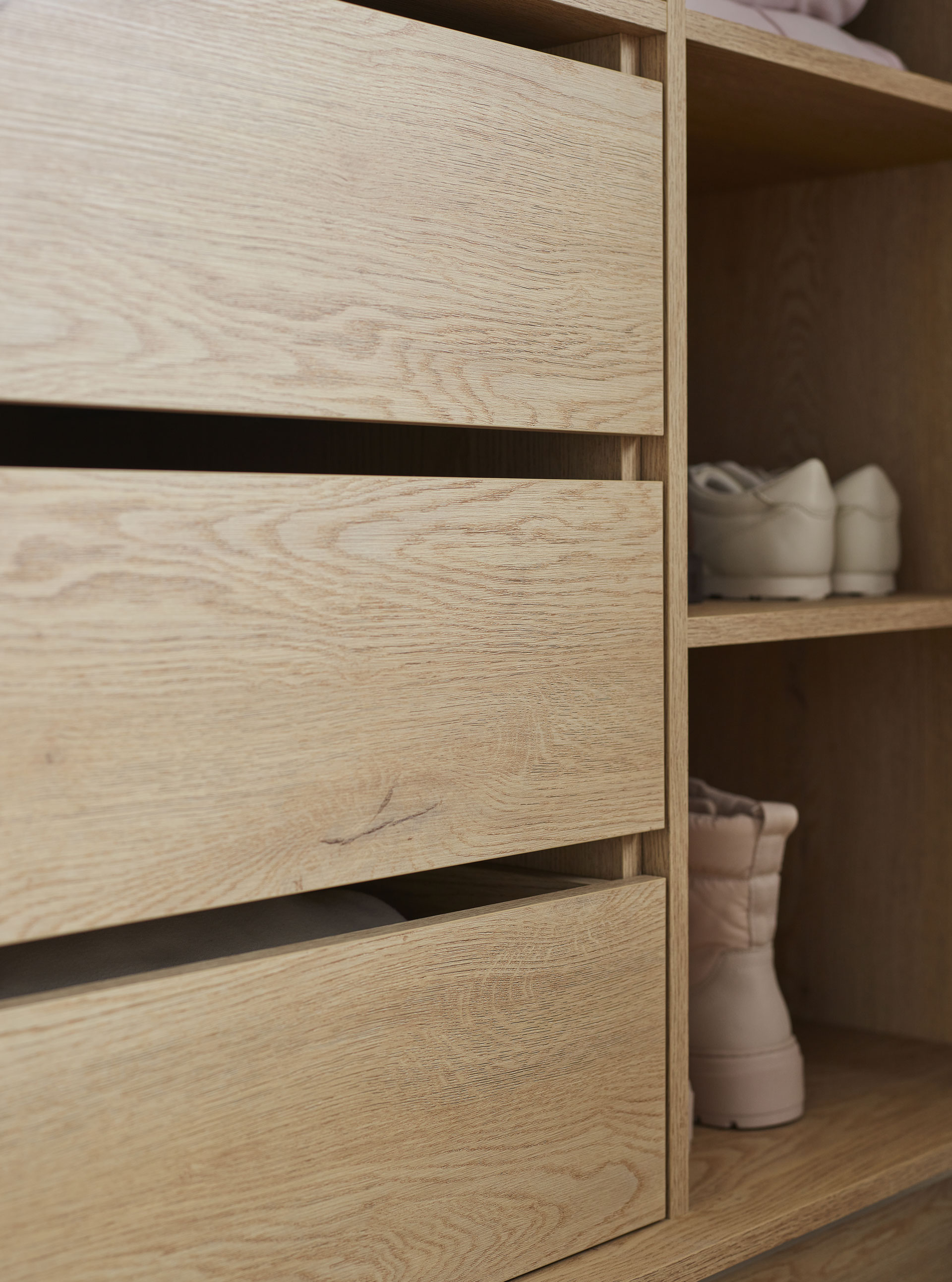 - Szuflady z mechanizmem cichego domyku stanowią idealne miejsce na bieliznę, pościel i wszelkie dodatki, które chce się mieć zawsze pod ręką.