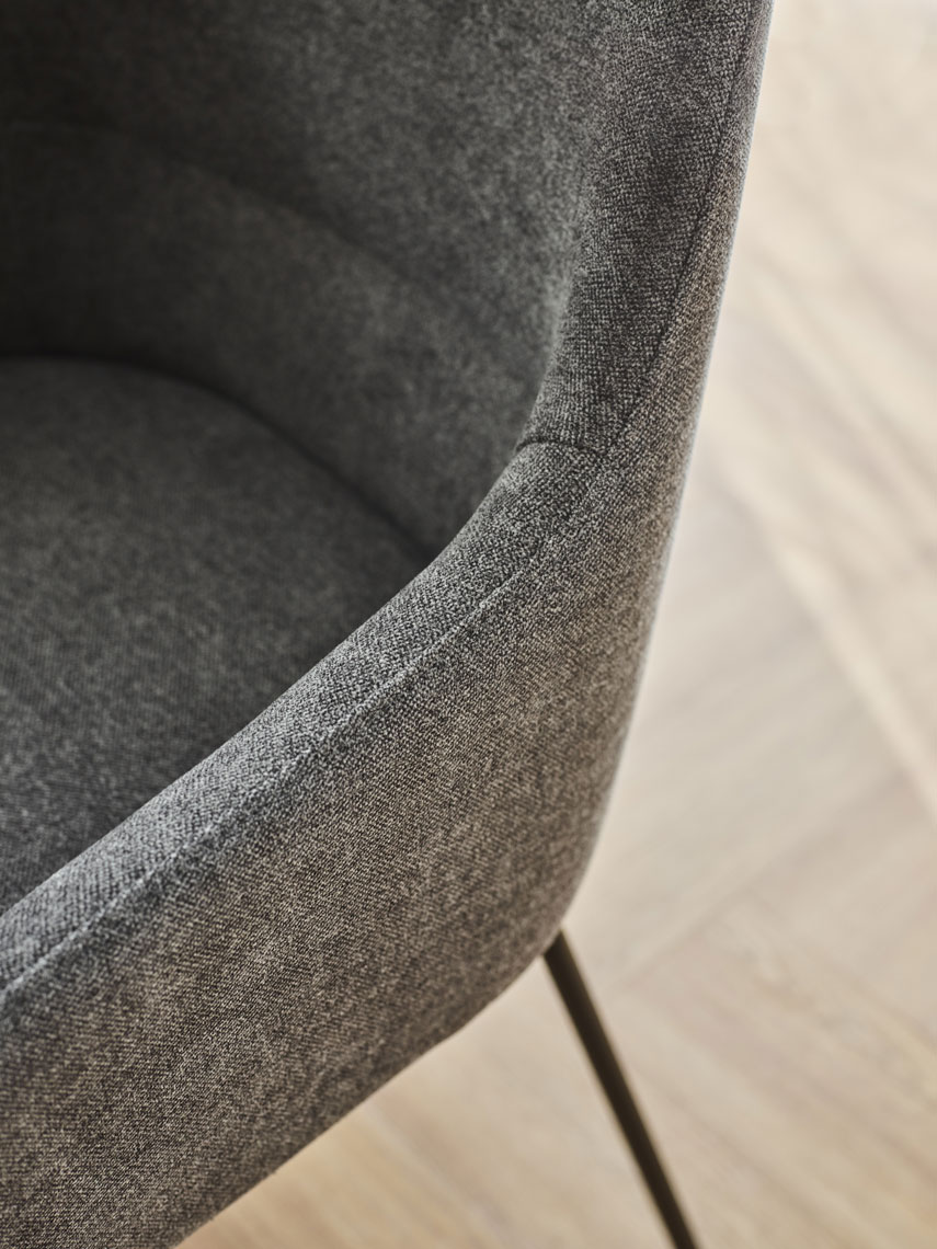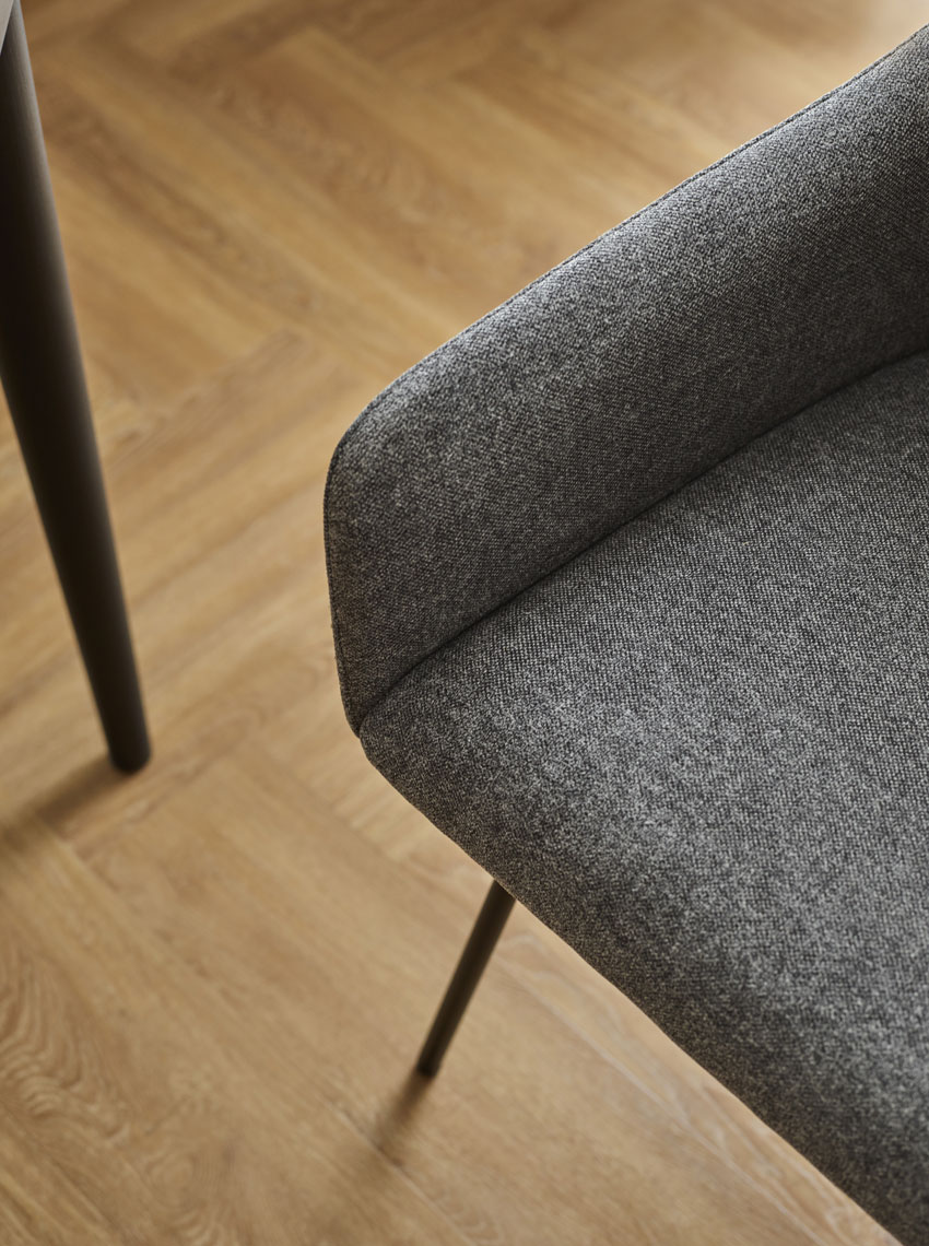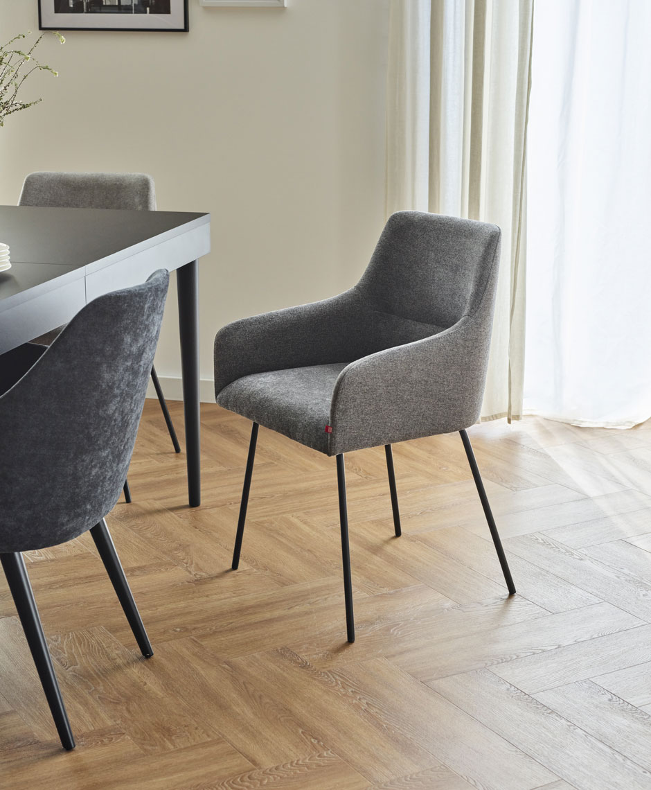 - Tapicerka krzesła dostępna jest w dwóch ponadczasowych odcieniach szarości: jasnym i ciemnym.