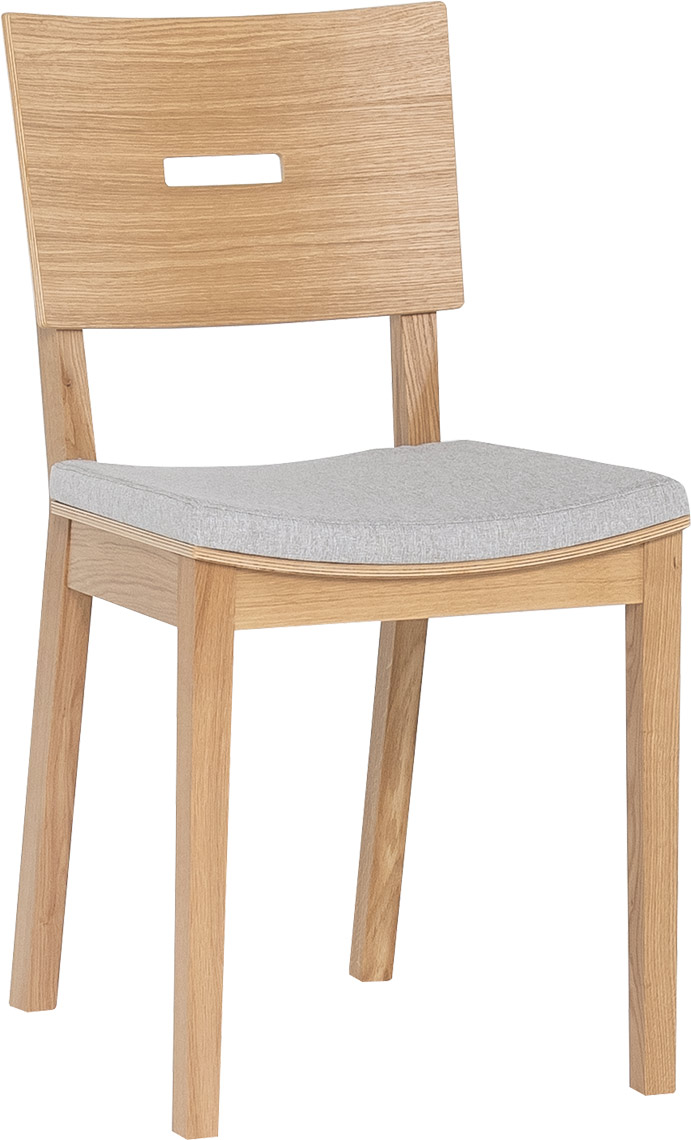 - W wersji dębowej : oparcie krzesła posiadają strukturę, będącą odwzorowaniem naturalnego rysunku drewna. Powierzchnia krzeseł szarych, czarnych i białych wykończona jest gładkim matowym malowaniem.