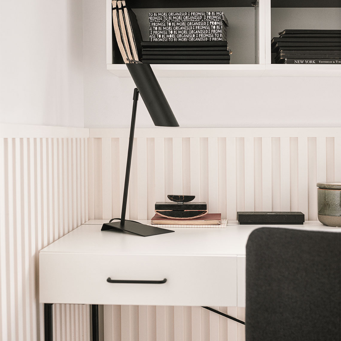 Białe panele lamelowe Linerio L-Line pozwalają stworzyć nowoczesną aranżację wnętrza – warto połączyć je z czarnymi meblami lub wzorzystymi dodatkami. Mogą zostać zamontowane za łóżkiem, biurkiem lub na suficie. Wyciszają i rozjaśniają przestrzeń, sprawiając, że staje się bardziej przytulna. Są lekkie i trwałe.