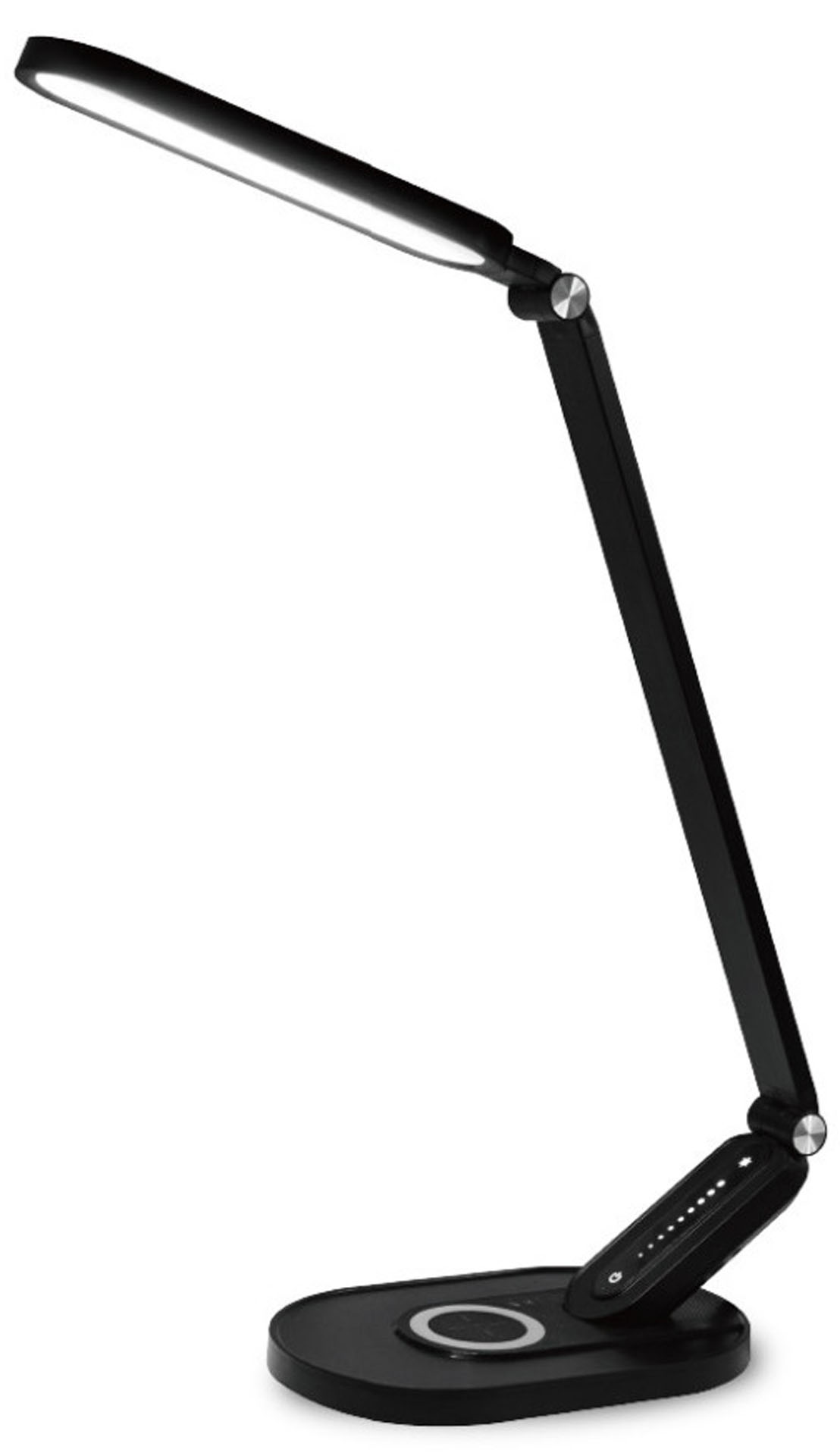 - Ładowanie bezprzewodowe – wystarczy położyć kompatybilny smartfon na podstawie lampy, aby rozpocząć ładowanie.
