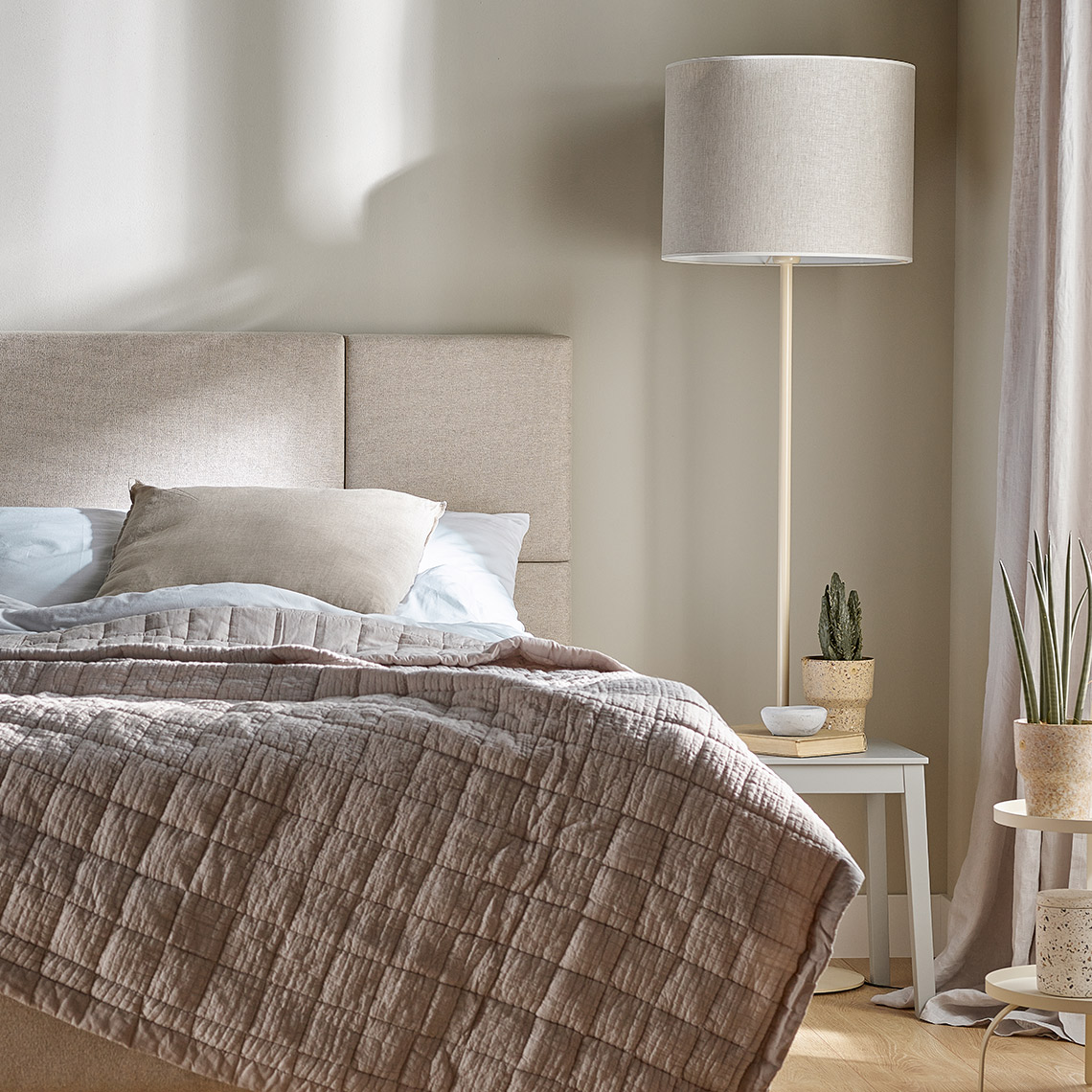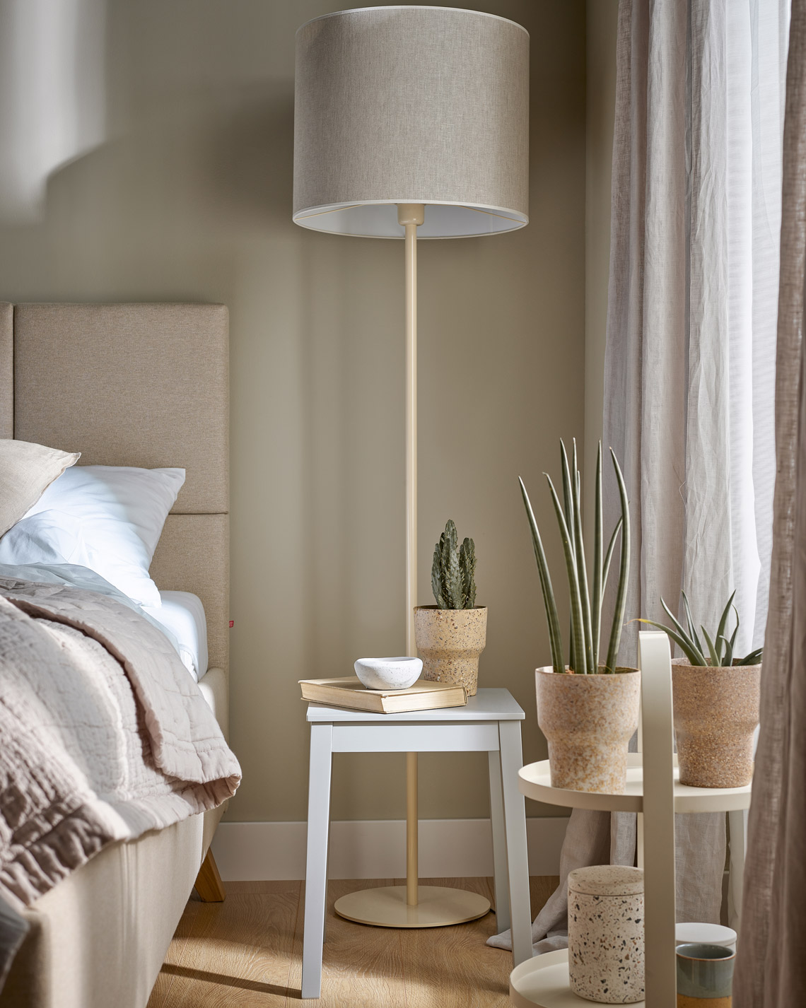 Hitta to abażury lniane w jasnym odcieniu beżu.