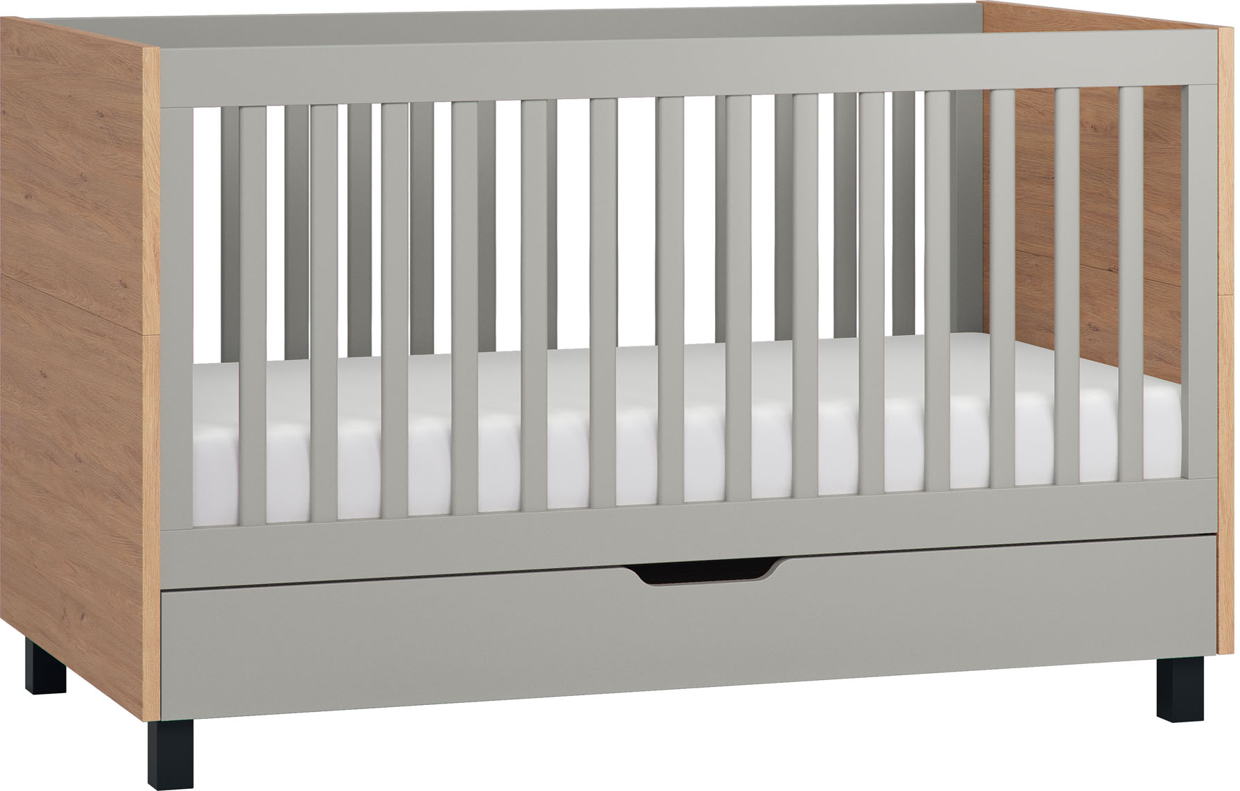 Łóżeczko Simple zapewni dziecku bezpieczne warunki do spokojnego snu i zdrowego rozwoju. Posiada wielopoziomową regulację podłogi, wyjmowane szczebliny i opcję przebudowy w tapczanik, dzięki czemu może zmieniać się razem z maluchem. Możesz ustawić je w dowolnym miejscu, również jako dostawkę do łóżka rodziców. W szufladzie u dołu pomieścisz zapasową pościel i akcesoria. O wykończeniu mebla możesz zdecydować samemu, wybierając kolor szczytów i korpusu oraz dopasowując najlepszy rodzaj nóżek.