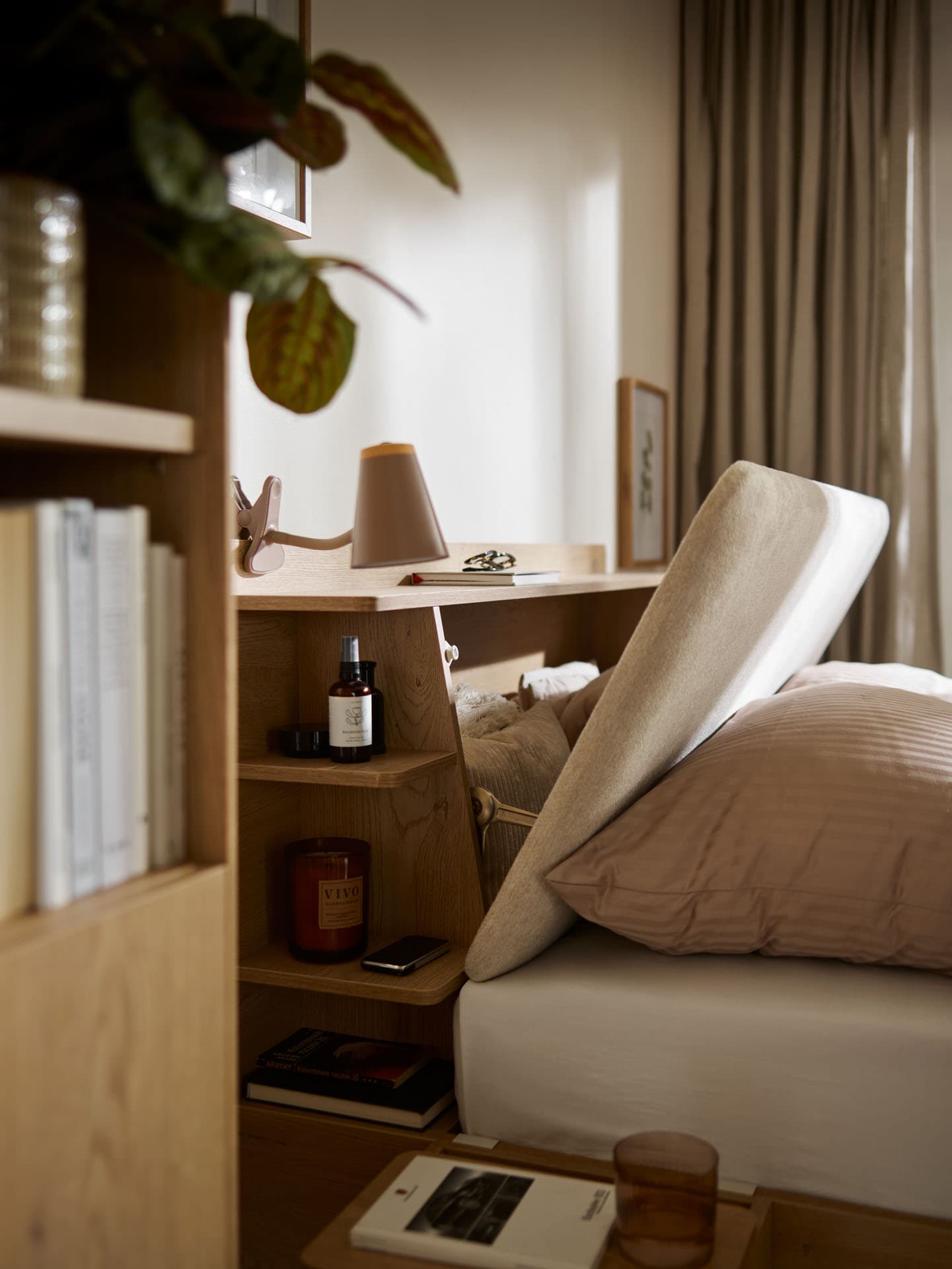 Łóżko z regałem Well zostało zaprojektowane jako centrum spokojnej, dobrze zorganizowanej sypialni. Połączenie miejsca do snu z przemyślaną strefą przechowywania wokół zagłówka pozwala mieć najpotrzebniejsze rzeczy zawsze pod ręką i buduje codzienny komfort użytkowania. Mebel dostępny jest w kilku rozmiarach, dzięki czemu można łatwo dopasować go do swojej sypialni.