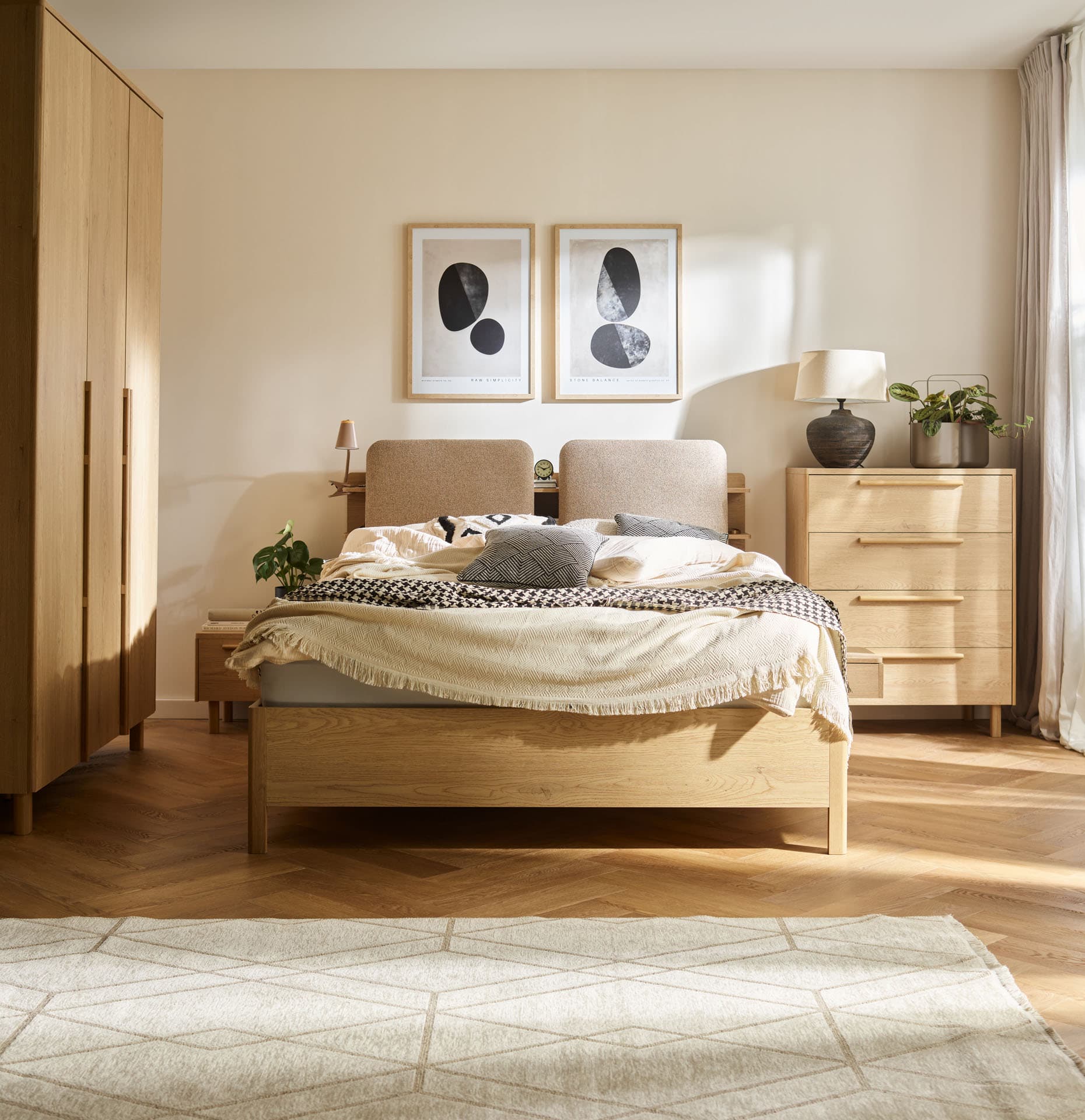 Łóżko z regałem Well zostało zaprojektowane jako centrum spokojnej, dobrze zorganizowanej sypialni. Połączenie miejsca do snu z przemyślaną strefą przechowywania wokół zagłówka pozwala mieć najpotrzebniejsze rzeczy zawsze pod ręką i buduje codzienny komfort użytkowania bez potrzeby sięgania po dodatkowe meble. Model tego łóżka dostępny jest w kilku rozmiarach, dzięki czemu można łatwo dopasować go do swojej sypialni.