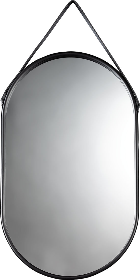 Lustro Lu ma owalną formę i jest oprawione cienką metalową ramą.