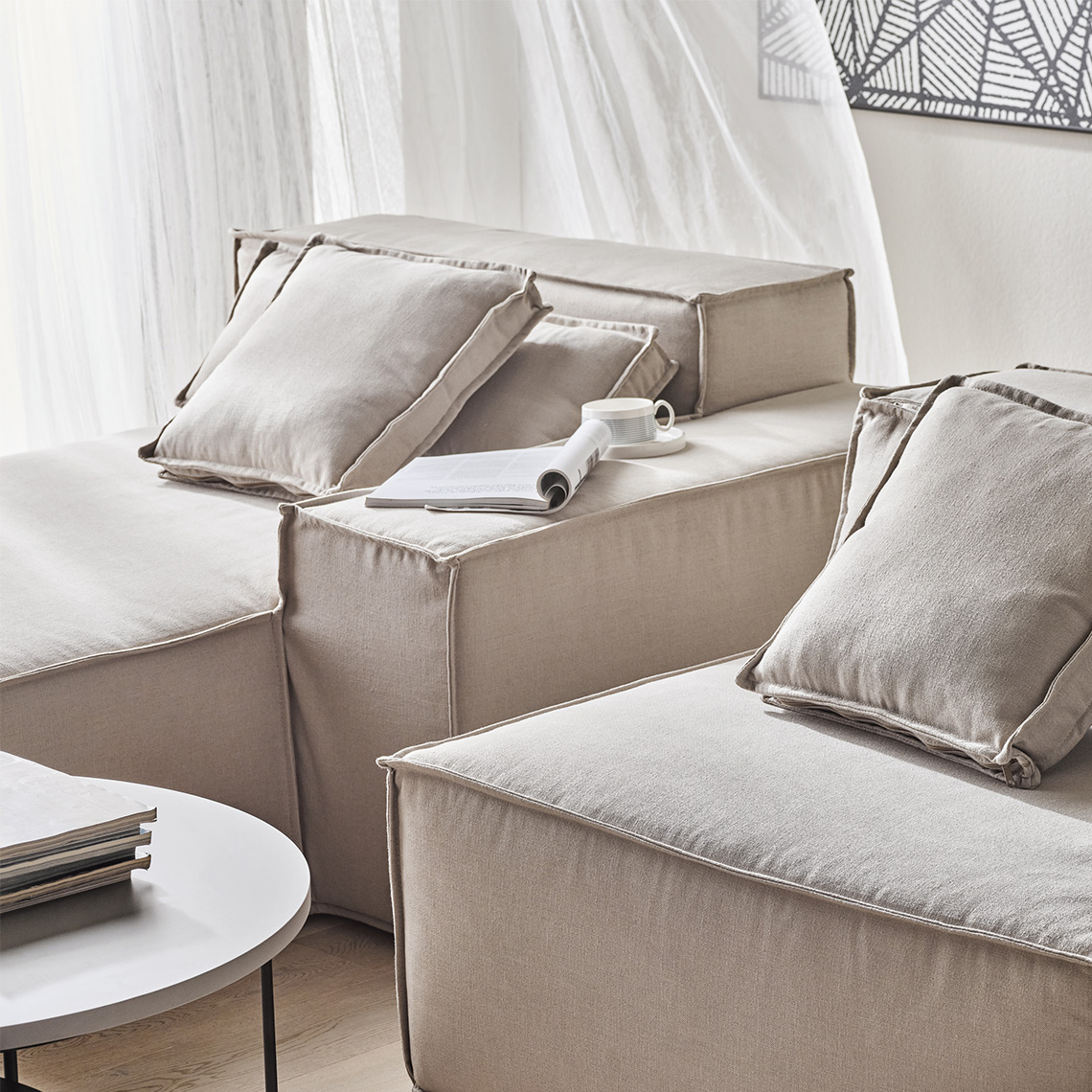 - W skład kolekcji wchodzą: moduł pojedynczy, moduł pojedynczy z boczkiem, sofa 2-osobowa, otomana z boczkiem, moduł narożny, puf - dostępne w wersji standardowej lub ze zdejmowanym pokrowcem.