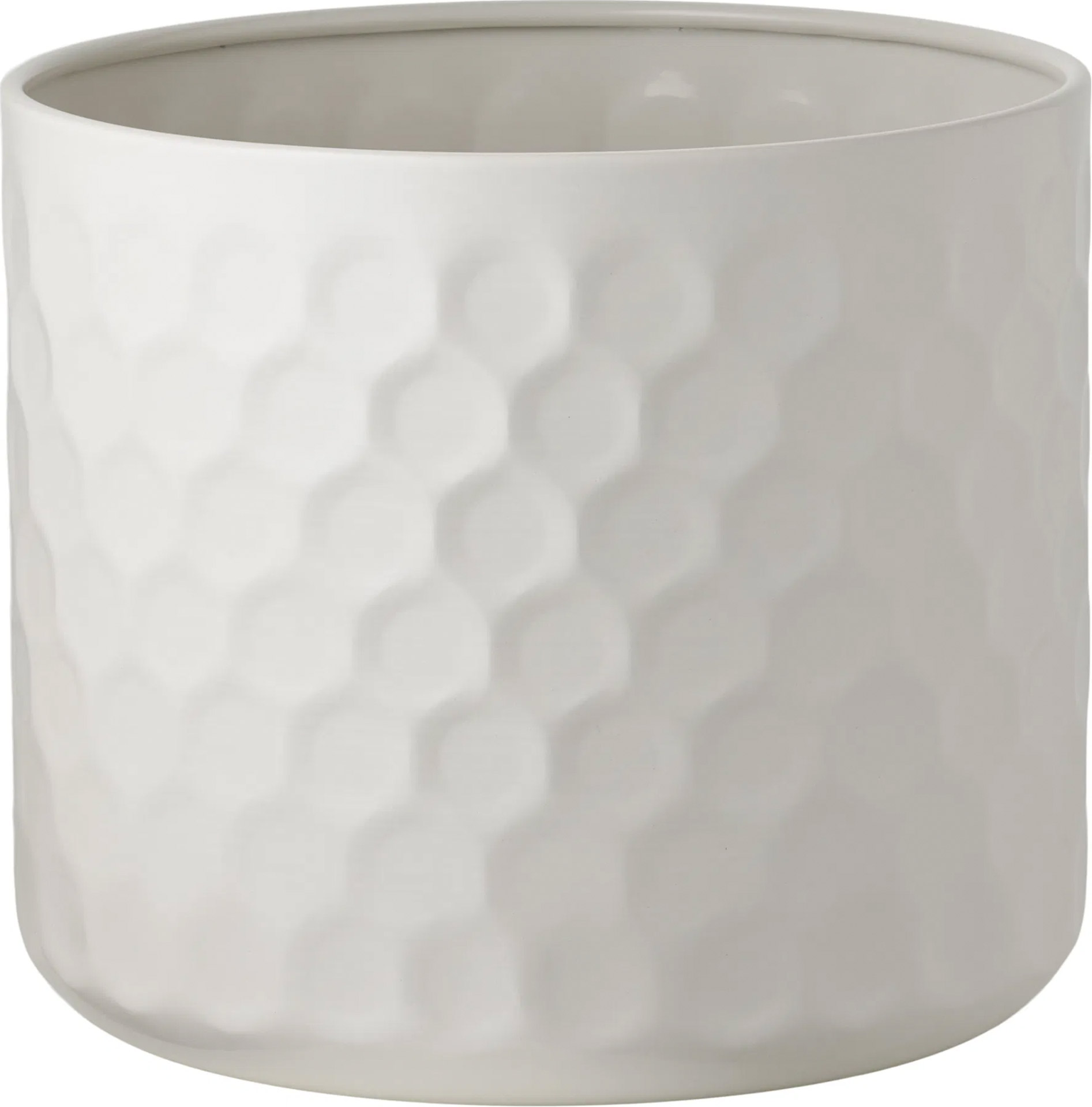 Biała osłonka marki House Nordic to propozycja dla miłośników nowoczesnego wzornictwa, które łączy prostotę formy z dekoracyjną strukturą. Regularna, geometryczna tekstura przypominająca plaster miodu nadaje jej unikalnego charakteru, sprawiając, że powierzchnia zyskuje głębię i w efektowny sposób załamuje światło. Dzięki swojej uniwersalnej kolorystyce i matowemu wykończeniu, przedmiot ten staje się eleganckim akcentem, który rozjaśnia aranżację i doskonale eksponuje naturalną zieleń roślin. Klasyczny, cylindryczny kształt oraz lekkie, metalowe wykonanie sprawiają, że osłonka jest niezwykle ustawna i trwała, stanowiąc nowoczesną alternatywę dla klasycznych dekoracji doniczkowych.
