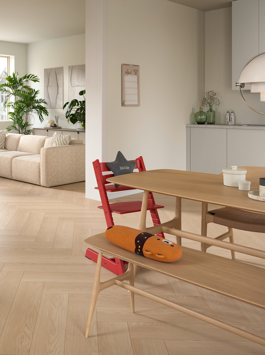 Panele podłogowe EGGER Nature Sense Herringbone Dąb Baronia Piaskowy EL2133 to eleganckie rozwiązanie o wyglądzie klasycznego parkietu w jodełkę. Dekor ukazuje harmonijną grę jasnych i ciemnych słojów, podkreślając naturalny charakter drewna. Powierzchnia jest odporna na ścieranie, blaknięcie i zabrudzenia, co zapewnia trwałość i łatwość pielęgnacji. Uniwersalny odcień piaskowego dębu świetnie komponuje się zarówno z nowoczesnymi, jak i ponadczasowymi wnętrzami, szczególnie przy zastosowaniu szarości. Panele są w pełni ekologiczne – produkowane z certyfikowanych odpadów tartacznych, bez PCV i plastyfikatorów. Doskonale sprawdzą się z ogrzewaniem podłogowym, a ich montaż jest prosty dzięki systemowi UniZip. Gwarantują 20 lat użytkowania, oferując trwałość i estetykę na lata.