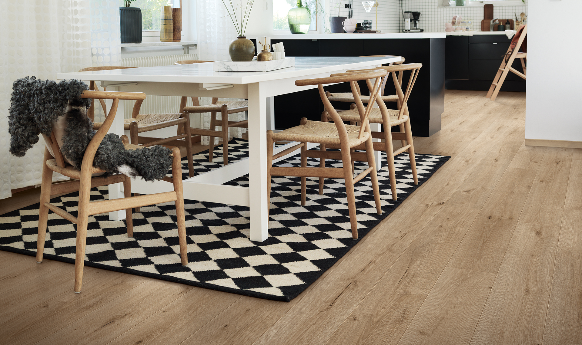 Ochronna warstwa wierzchnia TitanX™ zapewnia wysoką odporność podłogi na zarysowania i nadmierne zużycie, a dzięki AquaSafe jest ona wodoodporna — nie musisz się o nic martwić. Dzięki systemowi zamków PerfectFold™ montaż podłóg Arendal jest szybki i łatwy.