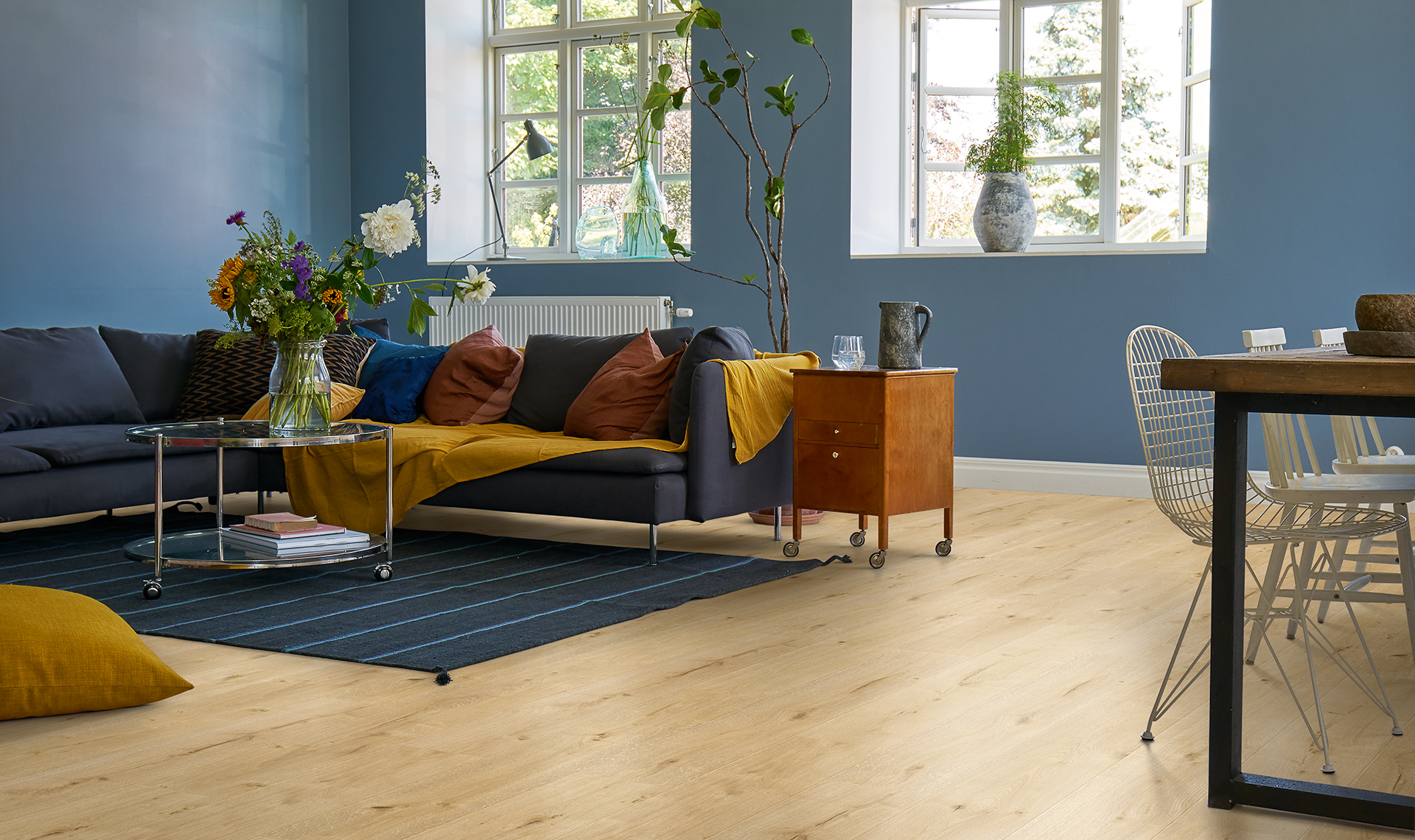 Ochronna warstwa wierzchnia TitanX™ zapewnia wysoką odporność podłogi na zarysowania i nadmierne zużycie, a dzięki AquaSafe jest ona wodoodporna — nie musisz się o nic martwić. Dzięki systemowi zamków PerfectFold™ montaż podłóg Arendal jest szybki i łatwy.