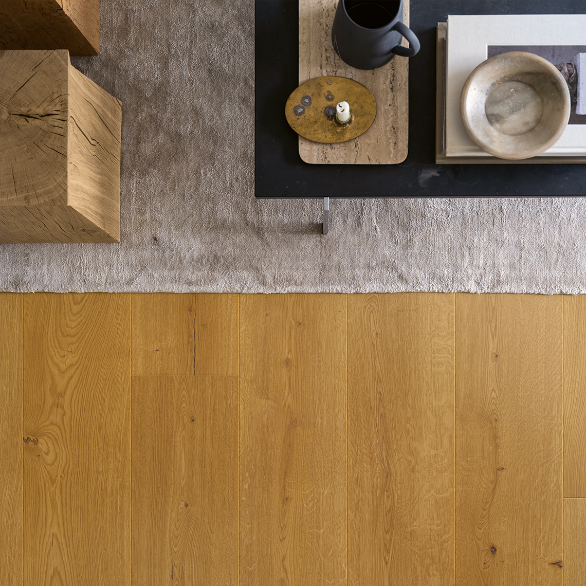 Panel podłogowy Odense z wyjątkowo długimi, szerokimi deskami i wyrazistym, 4-stronnym fazowaniem pomaga stworzyć wyrazistą i naturalną przestrzeń. Sprawia, że duże pomieszczenia zdają się być jeszcze większe, zapewniając jednocześnie poczucie spokoju w pomieszczeniach mniejszych.