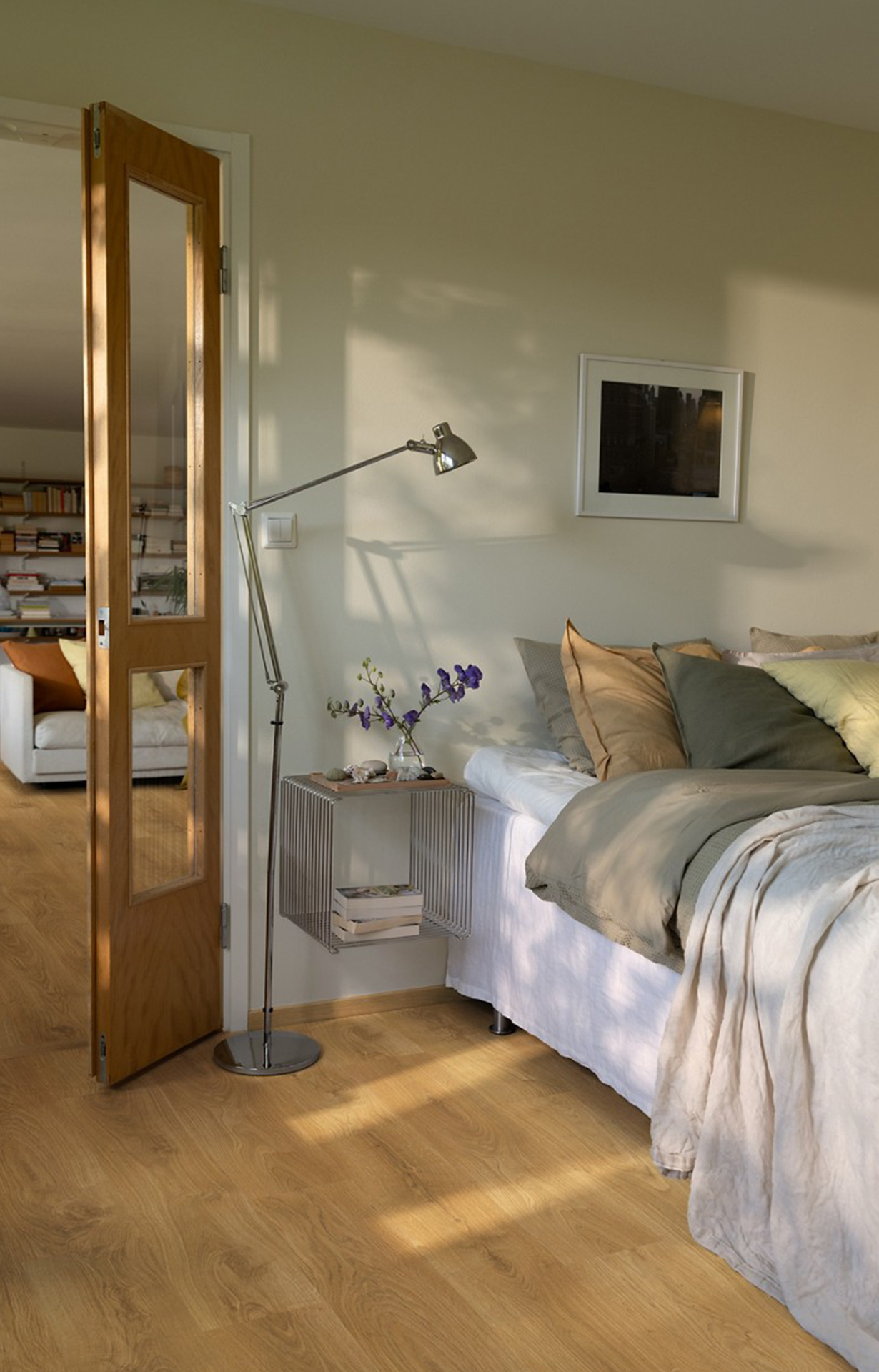 Panele podłogowe Pergo Perstorp Dąb Naturalny L0370-01804 wyróżniają się klasycznym odcieniem dębu, który nadaje wnętrzom ponadczasowy charakter. Subtelny rysunek słojów i realistyczna faktura drewna tworzą elegancki, naturalny efekt. Powierzchnia paneli jest odporna na zarysowania oraz wilgoć, co zapewnia ich długowieczność. System montażu na klik umożliwia szybkie i łatwe ułożenie podłogi bez użycia kleju. Dzięki prostej pielęgnacji zachowują swój estetyczny wygląd przez lata. To doskonały wybór dla osób poszukujących trwałej, stylowej i funkcjonalnej podłogi.