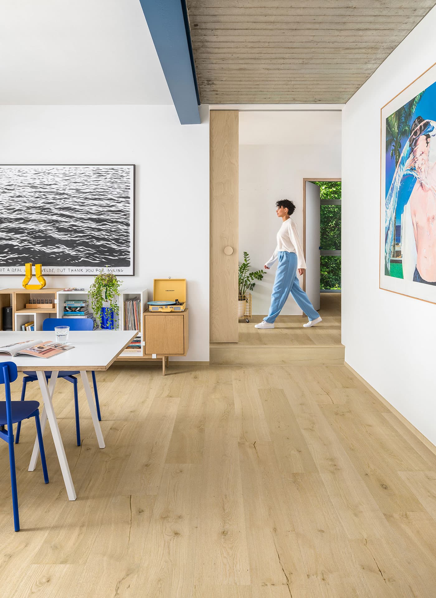 Panele podłogowe QUICK STEP Impressive Dąb Bawełniany IM8254 to harmonijne połączenie nowoczesnego stylu i najwyższej funkcjonalności. Wyposażone w niezawodny system montażu Uniclic, pozwalają na szybkie i bezproblemowe ułożenie podłogi. Czterostronna fuga podkreśla autentyczny rysunek drewna, nadając wnętrzu elegancki, naturalny charakter. Zaawansowana, wodoodporna powłoka HydroSeal skutecznie zabezpiecza powierzchnię przed wilgocią i codziennymi zabrudzeniami. Jedwabiście matowe wykończenie w odcieniu dębu bawełnianego wprowadza do pomieszczeń jasność i przytulną atmosferę. Panele doskonale współpracują z ogrzewaniem podłogowym, a dożywotnia gwarancja stanowi pewność trwałości i komfortu na wiele lat.