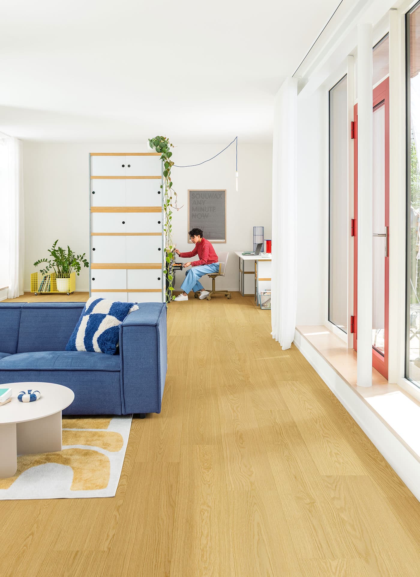 Panele podłogowe QUICK STEP Impressive Dąb Bourbonowy IM8260 to eleganckie połączenie wyrazistego wzornictwa i najwyższej trwałości. Dzięki innowacyjnemu systemowi montażu Uniclic instalacja podłogi jest szybka, wygodna i intuicyjna. Czterostronna fuga doskonale podkreśla format desek, nadając powierzchni naturalny wygląd prawdziwego drewna. Zaawansowana technologia HydroSeal zapewnia pełną wodoodporność, skutecznie chroniąc panele przed wilgocią oraz codziennymi zabrudzeniami. Jedwabiście matowe wykończenie w ciepłym, głębokim odcieniu dębu bourbonowego wprowadza do wnętrz przytulny, stylowy klimat. Panele są w pełni przystosowane do stosowania z ogrzewaniem podłogowym, a dożywotnia gwarancja daje pewność niezawodności i komfortu użytkowania przez długie lata.