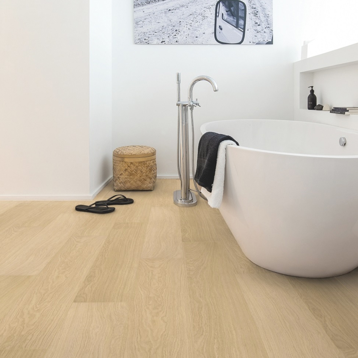 Panele podłogowe QUICK STEP Impressive Dąb Biały Satynowy IM3105 to idealne połączenie elegancji i wytrzymałości. Dzięki innowacyjnemu zamkowi Uniclic, montaż jest szybki i prosty. Czterostronna fuga dodaje naturalnego wyglądu drewnianej podłodze. Dodatkowo, wodoodporna powłoka HydroSeal chroni przed wilgocią, a jedwabiste i matowe wykończenie nadaje ciepły i przytulny charakter. Idealne dla ogrzewania podłogowego. Dożywotnia gwarancja zapewnia spokój na długie lata.