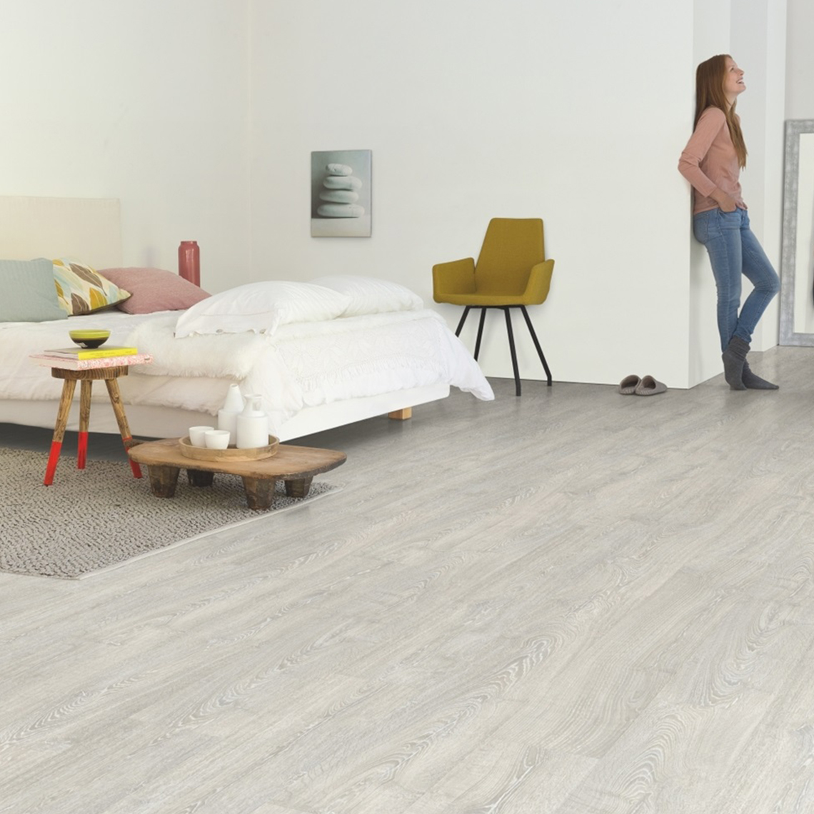 Panele podłogowe QUICK STEP Impressive Dąb Patina Classic Szary IM3560 to idealne połączenie elegancji i wytrzymałości. Dzięki innowacyjnemu zamkowi Uniclic, montaż jest szybki i prosty. Czterostronna fuga dodaje naturalnego wyglądu drewnianej podłodze. Dodatkowo, wodoodporna powłoka HydroSeal chroni przed wilgocią, a jedwabiste i matowe wykończenie nadaje ciepły i przytulny charakter. Idealne dla ogrzewania podłogowego. Dożywotnia gwarancja zapewnia spokój na długie lata.