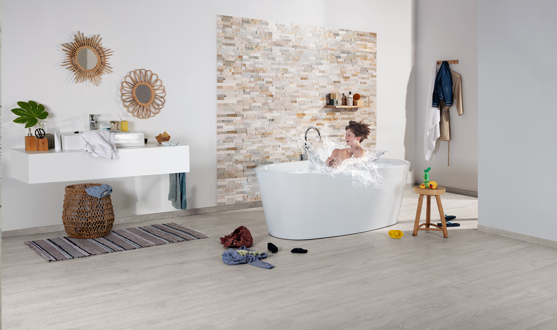 - Wodoodporna powłoka HydroSeal zapobiega przenikaniu wody w głąb podłogi