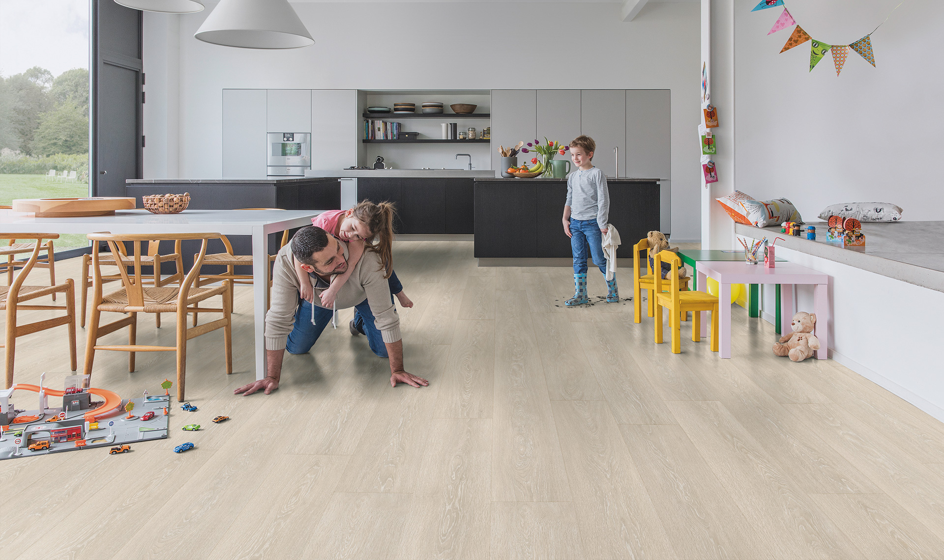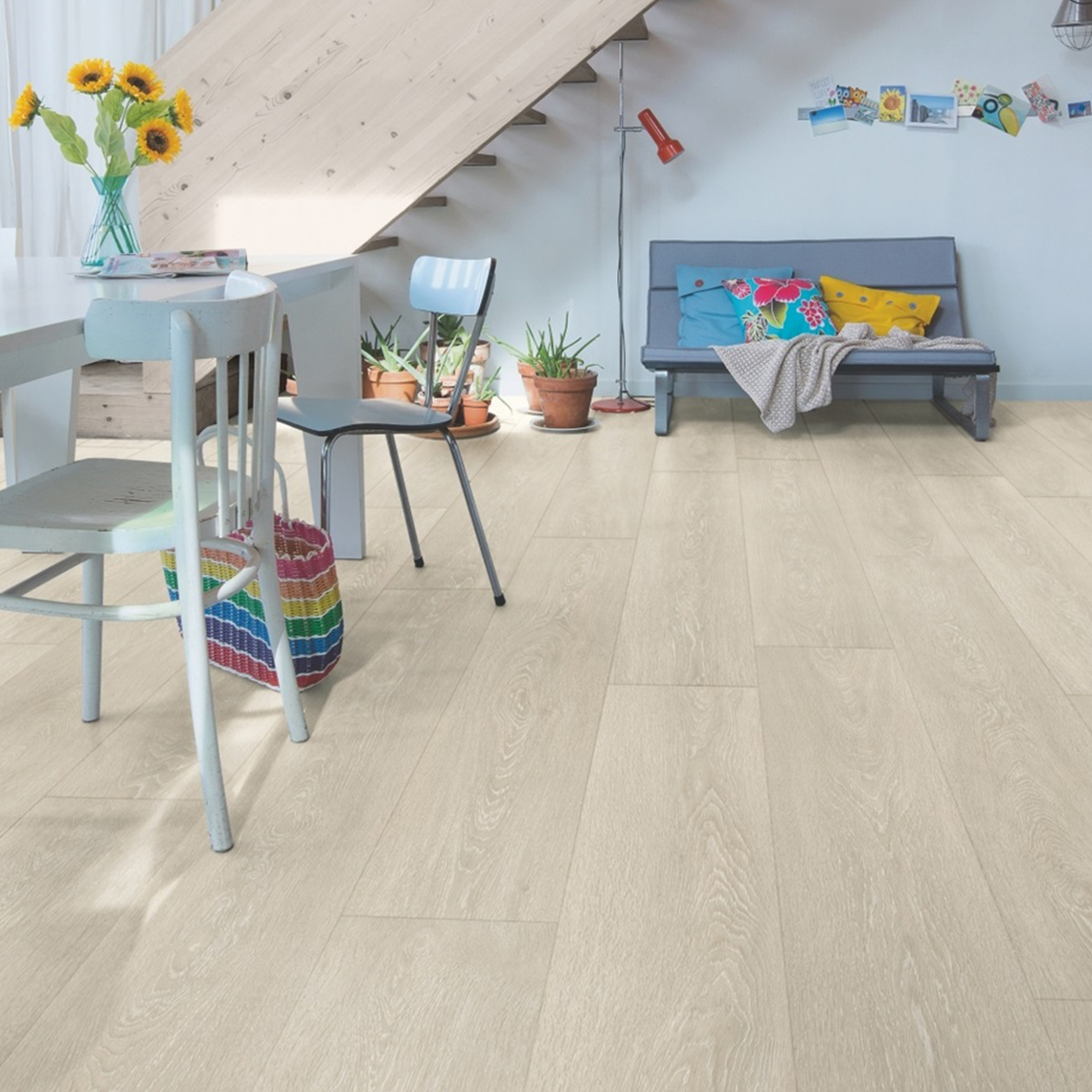 Panele podłogowe Dąb Nizinny Beżowy Jasny MJ3554 to doskonały wybór dla tych, którzy pragną piękna i trwałości. Dzięki wodoodpornej powłoce HydroSeal nie musisz się martwić o przenikanie wody, a czterostronna fuga doda autentycznego wyglądu drewnianej podłodze. Szerokie i długie deski (205x24cm) optycznie powiększą wnętrze Twojego domu. Klasa 32 i matowe wykończenie nadają podłodze elegancki, niepołyskliwy wygląd. Dożywotnia gwarancja producenta Quick Step sprawia, że to inwestycja na lata.