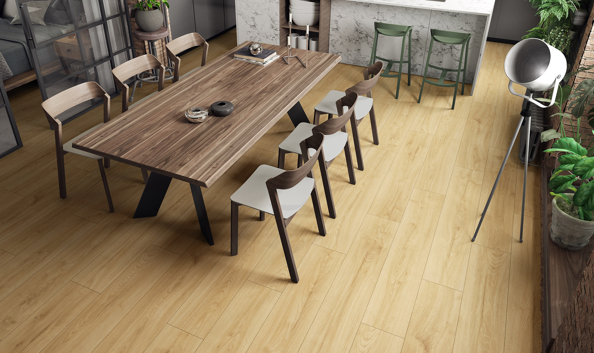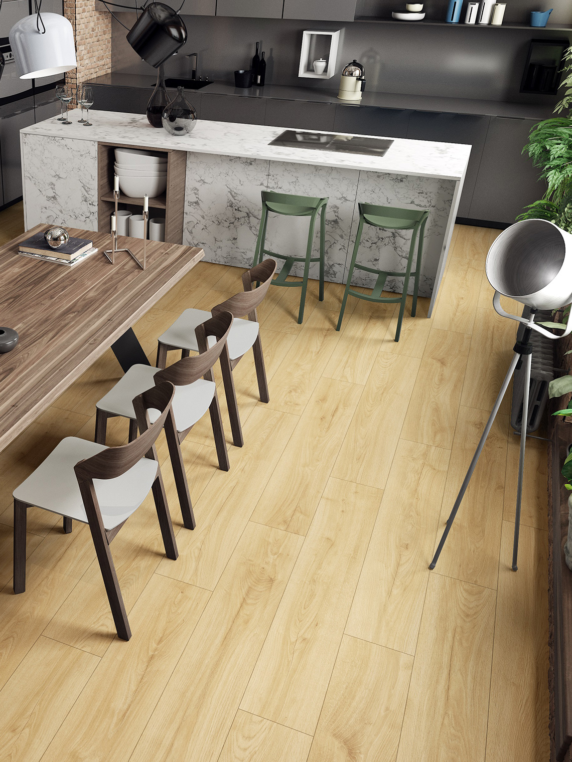 Dzięki technologii Aqua Zero, panele są odporne na wilgoć, co czyni je doskonałym wyborem do pomieszczeń o podwyższonej wilgotności, takich jak kuchnia, łazienka czy przedpokój. Klasa ścieralności AC6 gwarantuje wyjątkową odporność na zarysowania i ścieranie, sprawiając, że podłoga pozostanie w nienagannym stanie przez wiele lat, nawet przy intensywnym użytkowaniu.